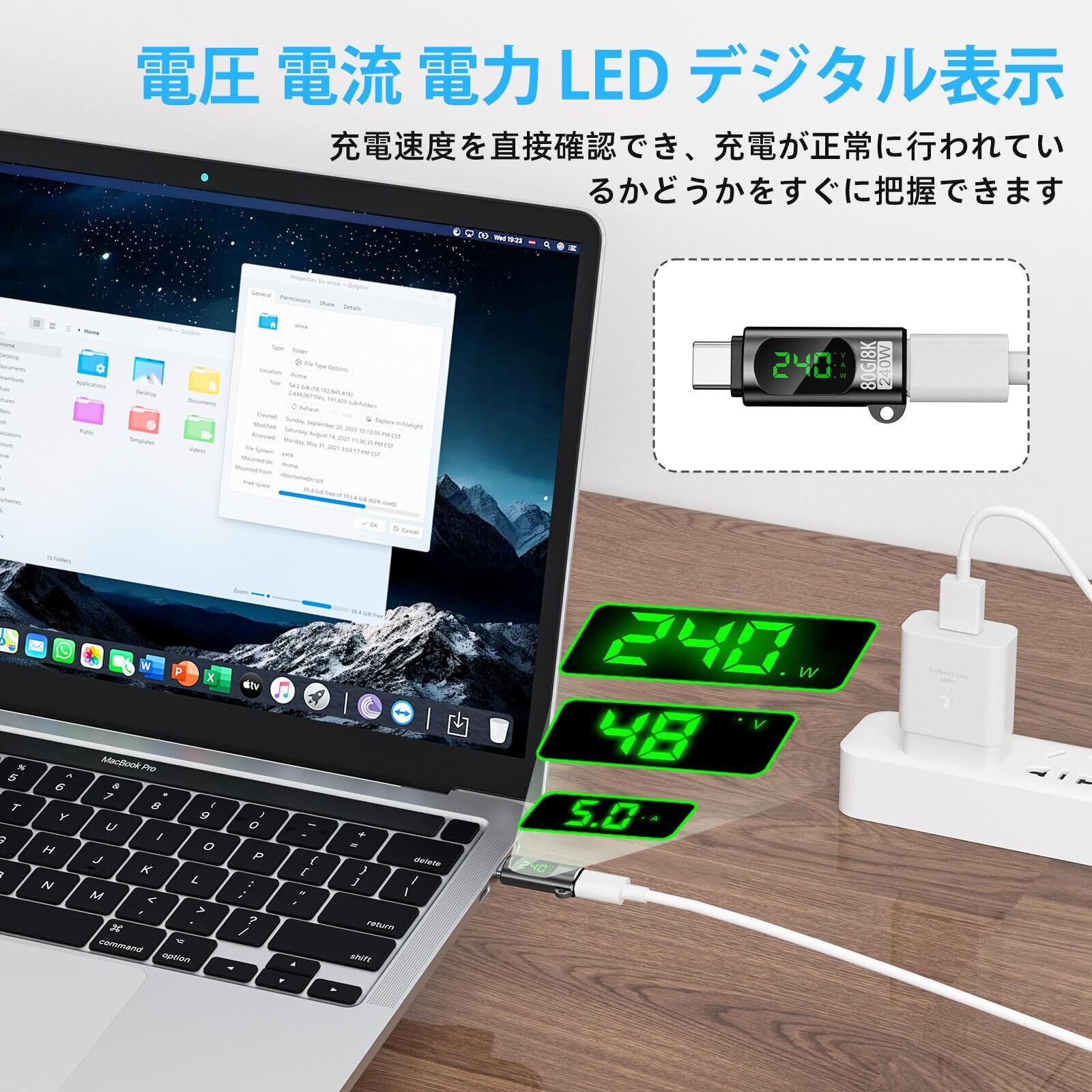 【新春セール】USBC 電流電圧チェッカー 双方向 USB C パワーメーター、2個セット 電圧・電流・電力LEDデジタル表示、240W アダプター電力計テスター、80Gbpsデータ転送対応 Type C延長コネクタi-Phone 15/16/17、Mac-Book、i-Pad など対応 USB-Cケーブル/デバイス用、8K/60Hz、サンダーボルト5に対応、金属シェル、ストラップを付属