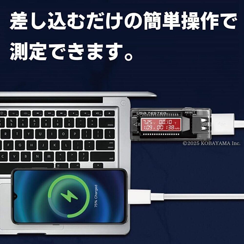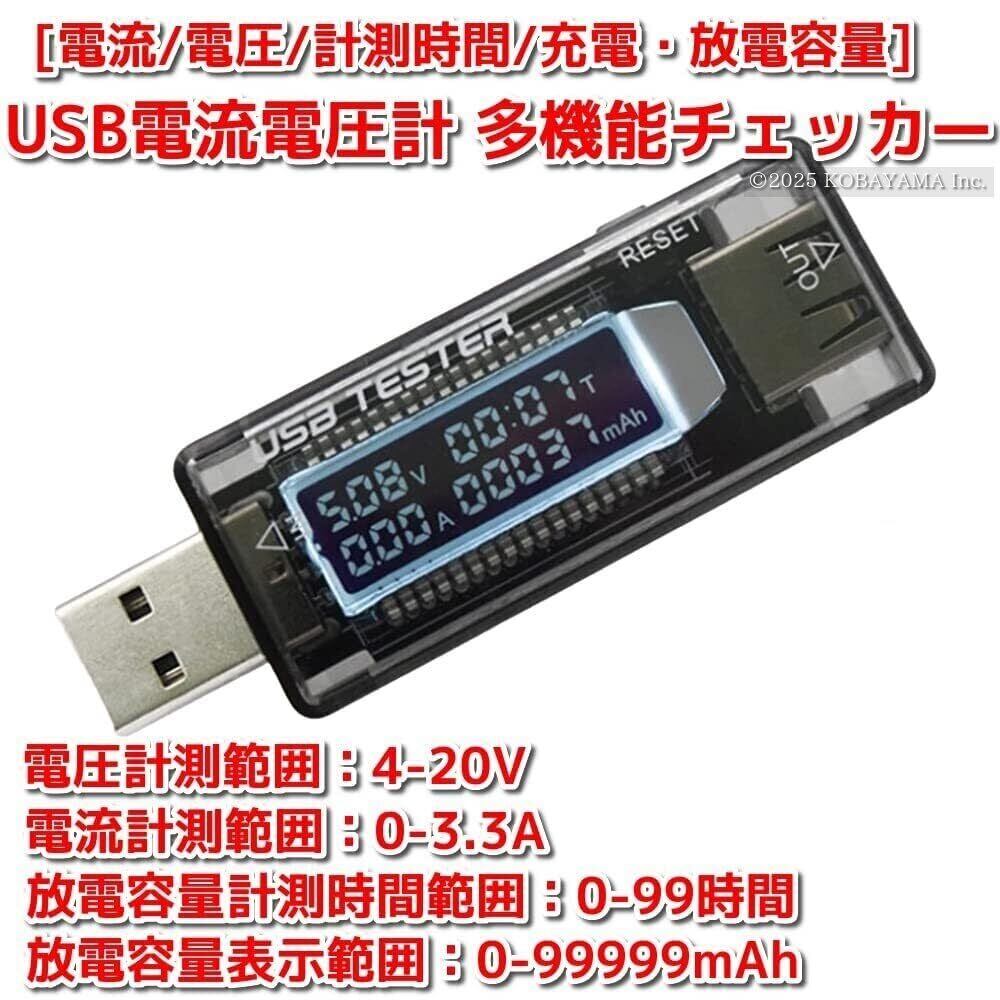 USB電流電圧テスター チェッカー 4-20V/0-3A 急速充電QC2.0 積算電流・通電時間計測