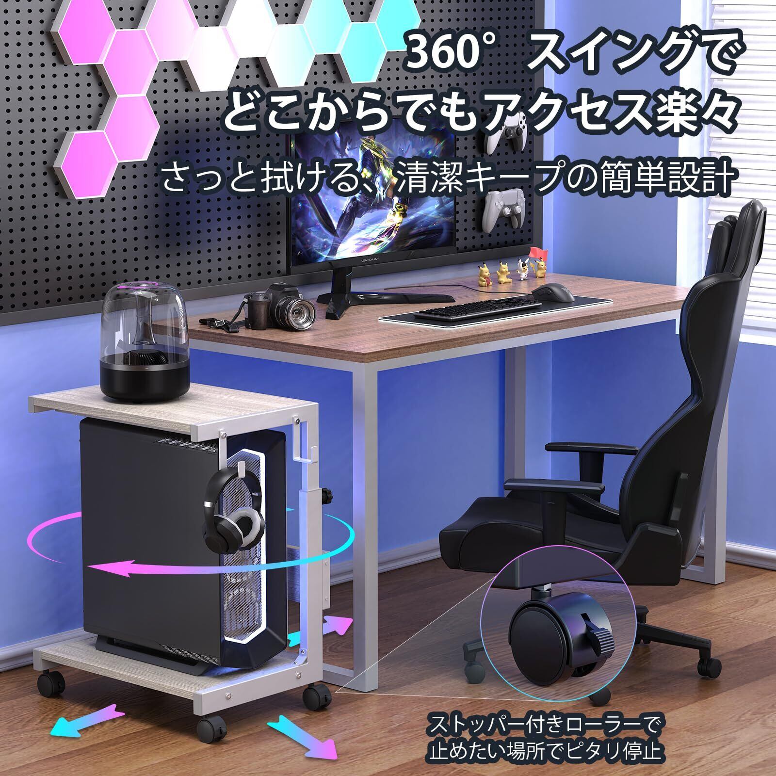 【コ字型設計のテーブル】CPUスタンドは工字型のデザインで、高品質のMDF板と堅牢な合金鋼フレームを採用して、腐食に強く、重い物を支えることができます。ソファやベッドの下のスペースに、隙間を入れても使えます。ソファのサイドテーブルやリビングのサイドテーブルとしても使えます。