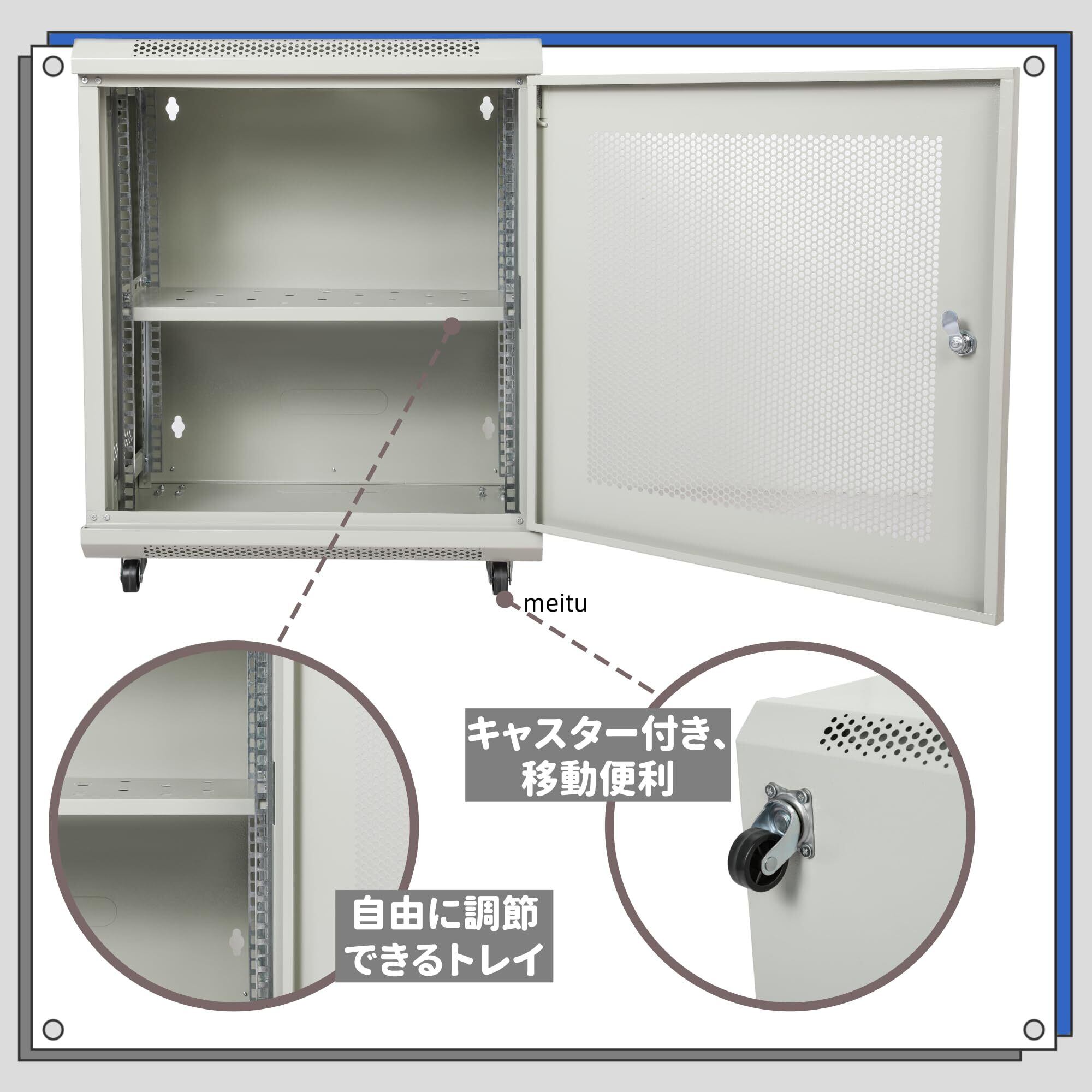 【高耐久性&スチール製】冷間圧延鋼板を採用し、静電粉末塗装により腐食に強く長期使用に耐えます。通気性に優れたメッシュドアを採用し、放熱効果が高く、サーバー・ネットワーク機器・NAS などを安全に収納・保護します。