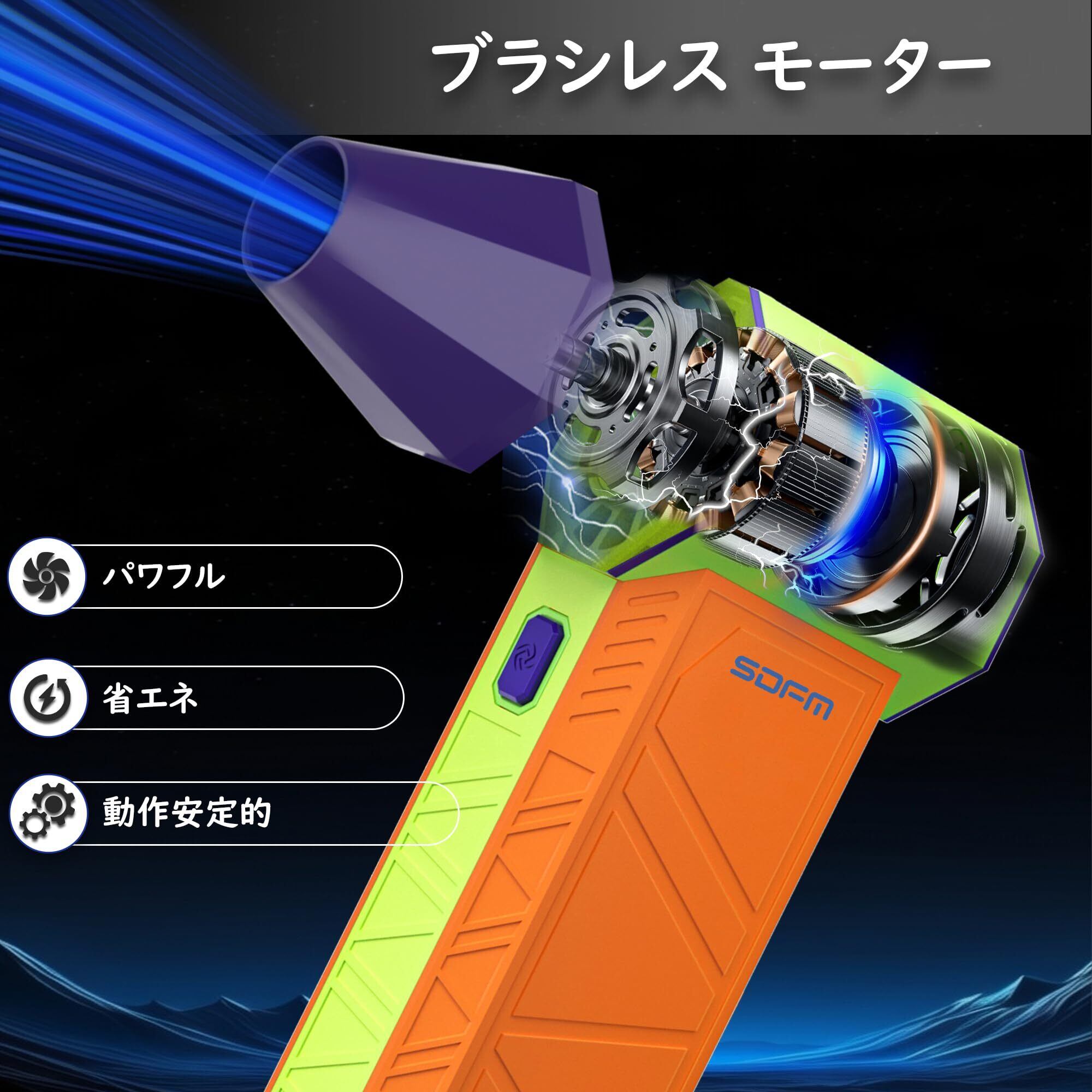 SDFM エアダスター 電動 小型 ブロワー 130000rpm高速回転 強力 電動エアダスター 風量調整 ブロアー Type-C充電式 ミニ ぶろわー 強磁力・取替えノイズ 洗車・掃除・空気入れ対応 (カラー)