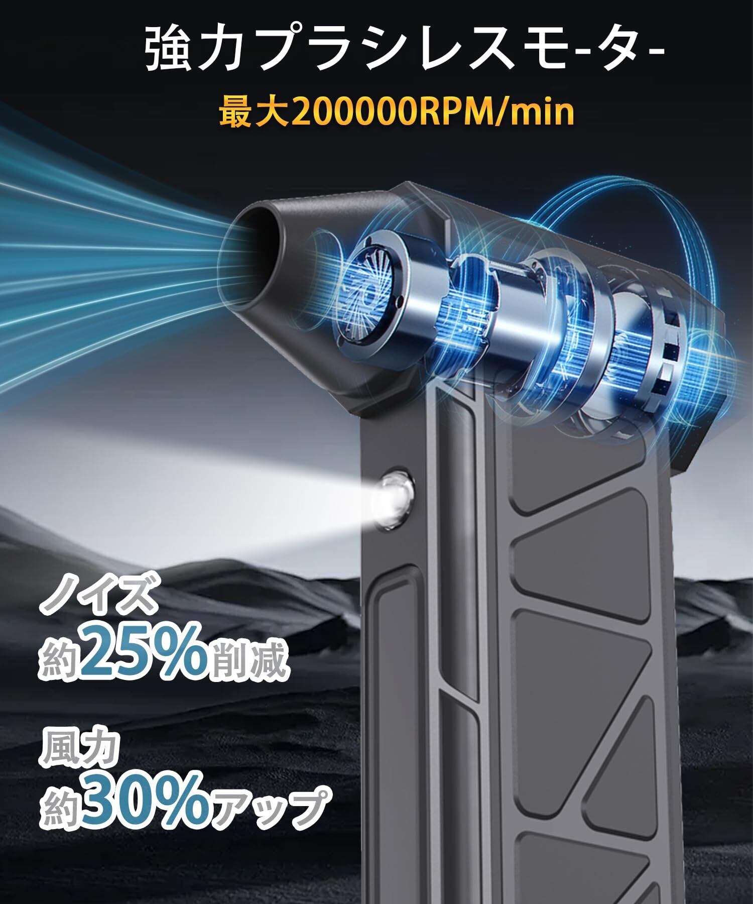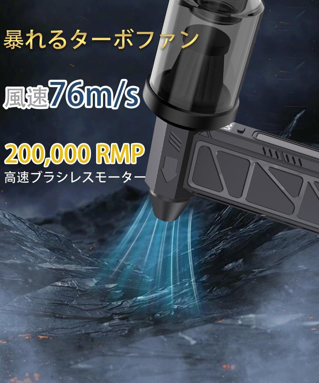 電動エアダスター エアダスター ブロワー ハンディ掃除機 200,000RPM高速回転 4段階風量調整 8000mAh大容量 LED照 LCDディスプレイ 2種類ノズル コードレス Type-C充電式 小型で強力 軽量 過熱保護 ノズル付き 日本語取扱説明書付き 多用途(PC 掃除/キーボード/車内/エアコン/洗車/吹雪用等)