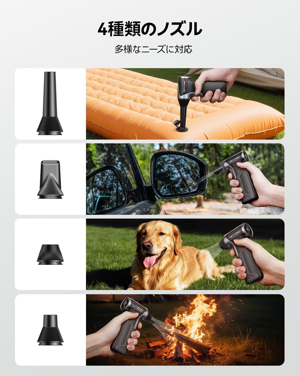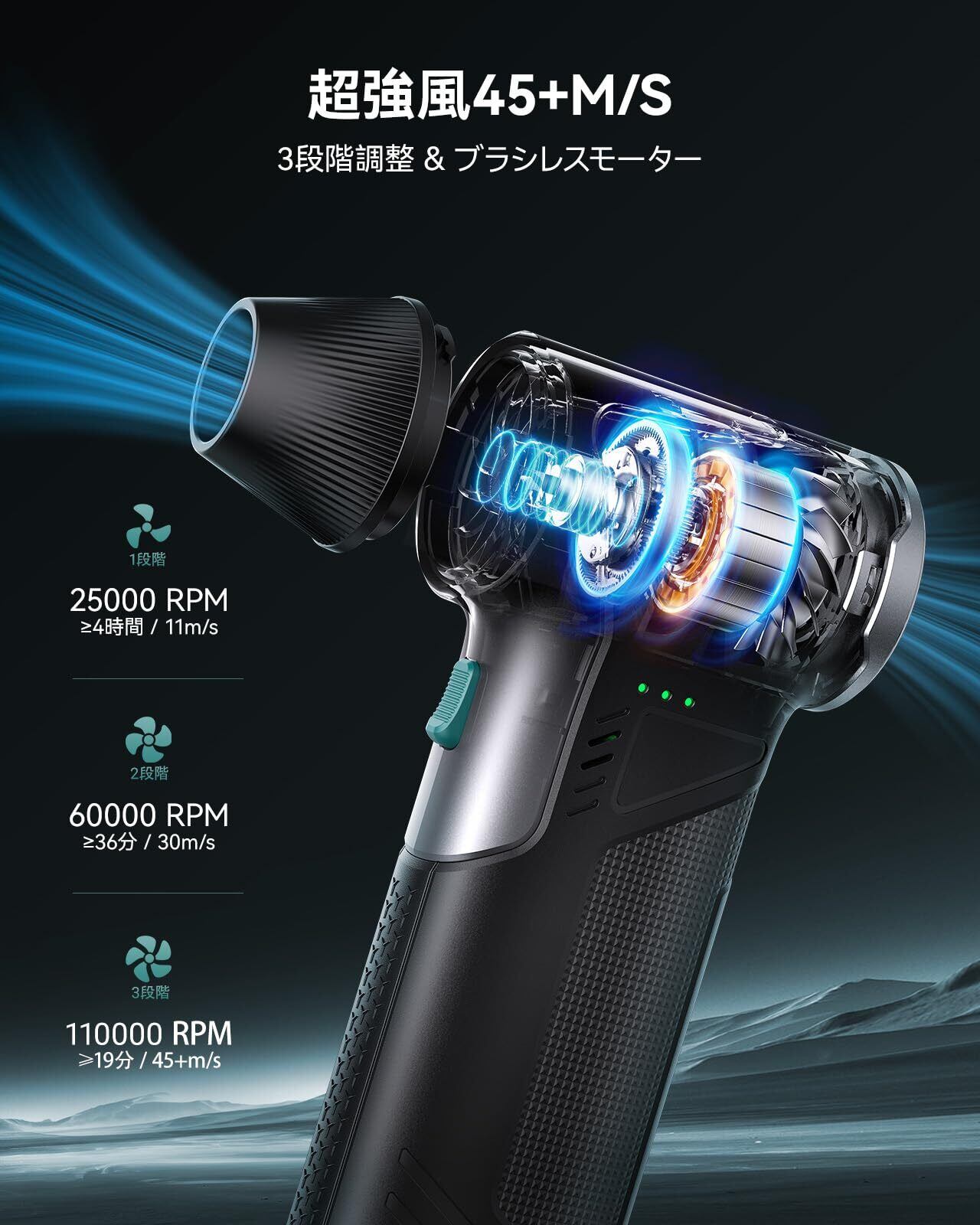 VANTURE POWER 電動エアダスター小型 209g 超軽量 強力ブロワー 110000RPM 超高速 充電式 5000mAh大容量バッテリー(最大240分連続使用)3段階風量調整 携帯便利 PC/キーボード掃除/洗車/空気入れ/おもちゃ掃除/業務用/家庭用 4種類ノズル付き