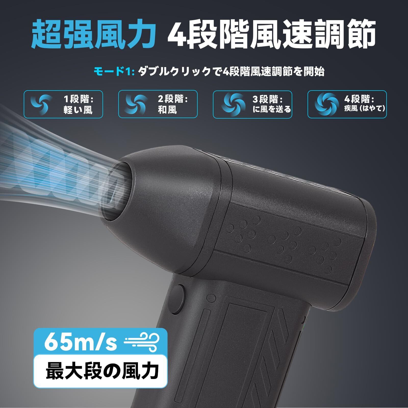 【超強力・高効率クリーニング】この空気噴射ファンは 65m/s の強力な風速と 1 分間 18 万回転の超高回転数を備え、埃や屑などを素早く効果的に除去できます。電子機器やコンピューター本体、カメラレンズなどの精密機器のクリーニングから、車の内装や家具の隙間など届きにくい場所の掃除まで、どんな場面でも簡単に対応でき、高効率なクリーニング体験を提供します。