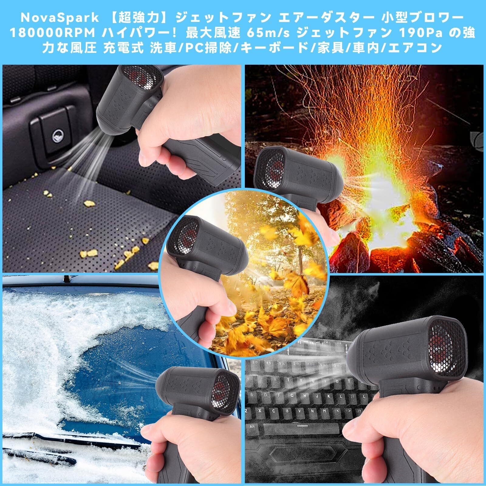 NovaSpark ジェットファン エアーダスター 小型ブロワー 180000RPM ハイパワー!最大風速 65m/s ジェットファン 190Pa の強力な風圧 充電式 洗車/PC掃除/キーボード/家具/車内/エアコン