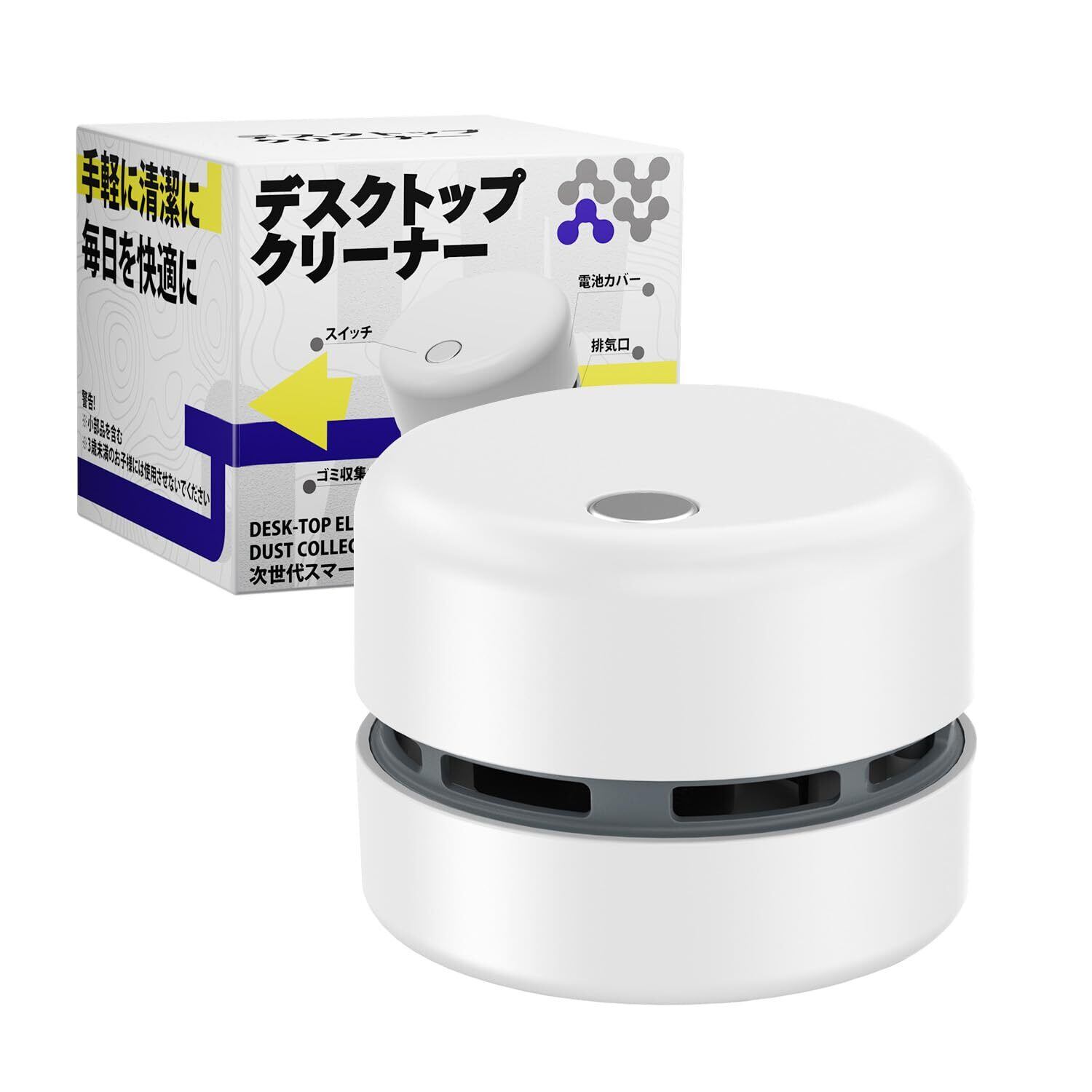 卓上クリーナー 消しカスクリーナー 13500RPM 強力吸引 軽量 コンパクト 乾電池式 消しゴムカスクリーナー 卓上掃除機 安全設計 子供 小学生/家庭/オフィス用 ホワイト BASEMAX