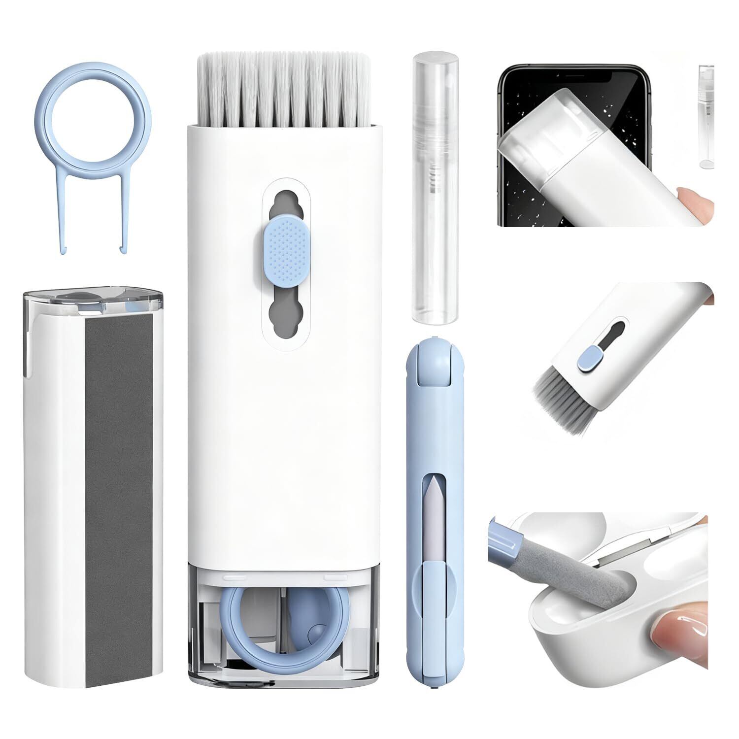 【新着商品】7-in-1多機能クリーニングツール キーボード清掃 ブルー グリーン 電子機器用クリーニング コンパクト設計 汚れ対策 多用途ブラシセット オフィス/家庭用 細部まで清掃 指紋 油汚れを徹底除去 メンテナンス必須アイテム (ブルー)