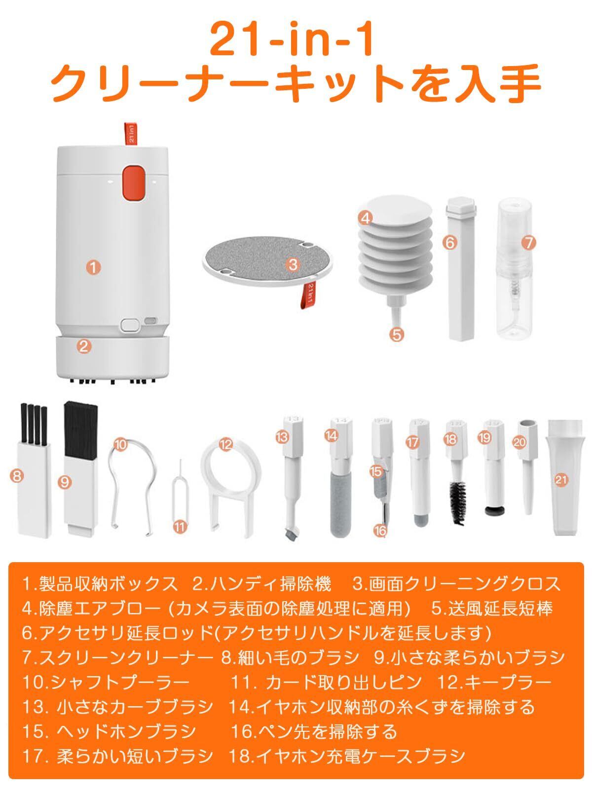 【2022最新】卓上クリーナー キーボード 掃除機 21 in 1 多用途 クリーニングツール キーボード掃除ブラシ 卓上掃除機 充電式 type-c AirPods 1/2/3/Pro 1&2対応ワイヤレスイヤホン掃除道具 カメラ用 軽量 持ち運び簡単 コンパクト 電子製品掃除用 多機能