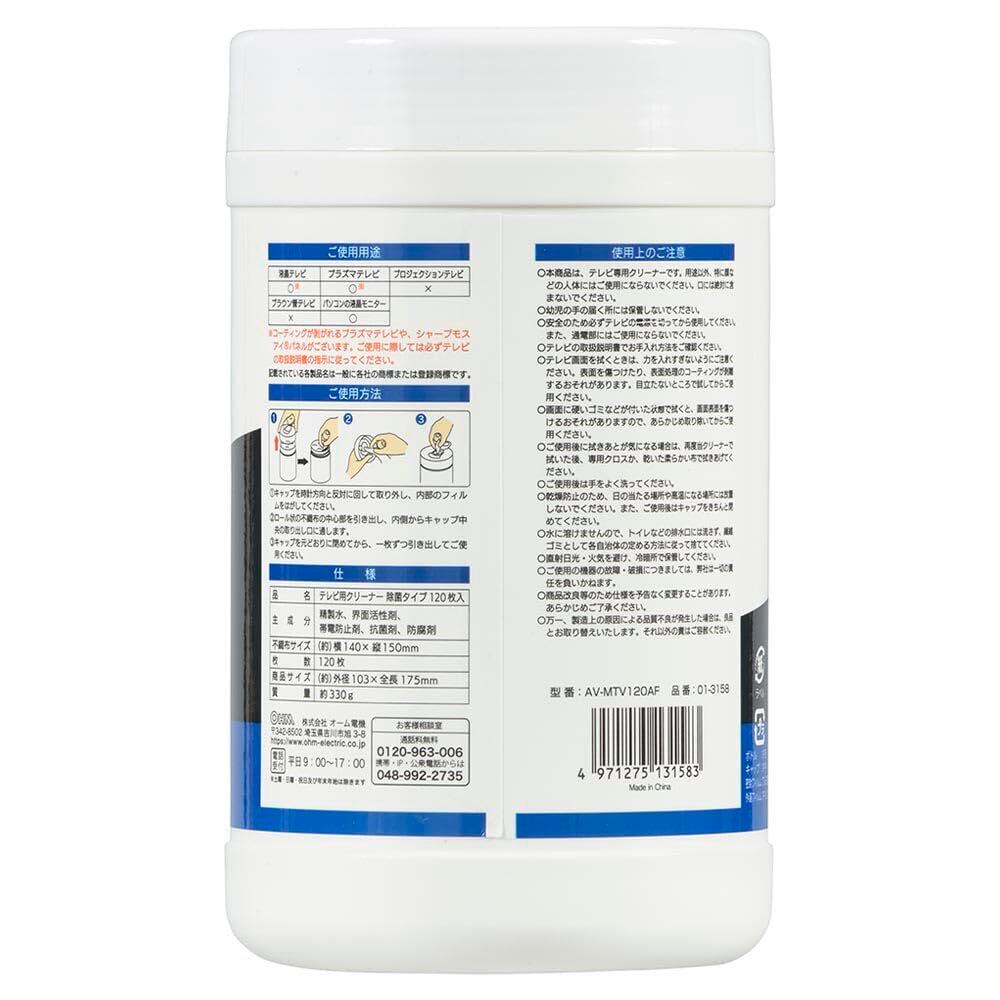 オーム電機 液晶テレビクリーナー 除菌 ノンアルコール 画面クリーナーウェットティッシュタイプ TV用クリーナー アルコールフリー 120枚入 AV-MTV120AF 01-3158 OHM
