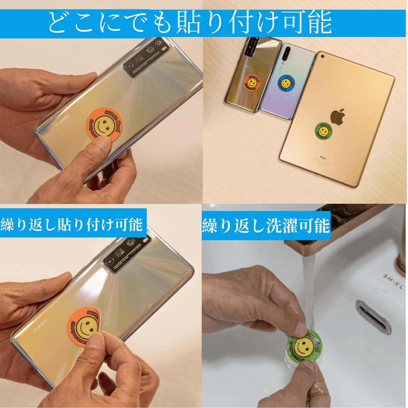 自己粘着性 - 粘着性のあるゲルの裏地により、デバイスに直接貼り付けることができるため、非常に便利です。小さくて便利。