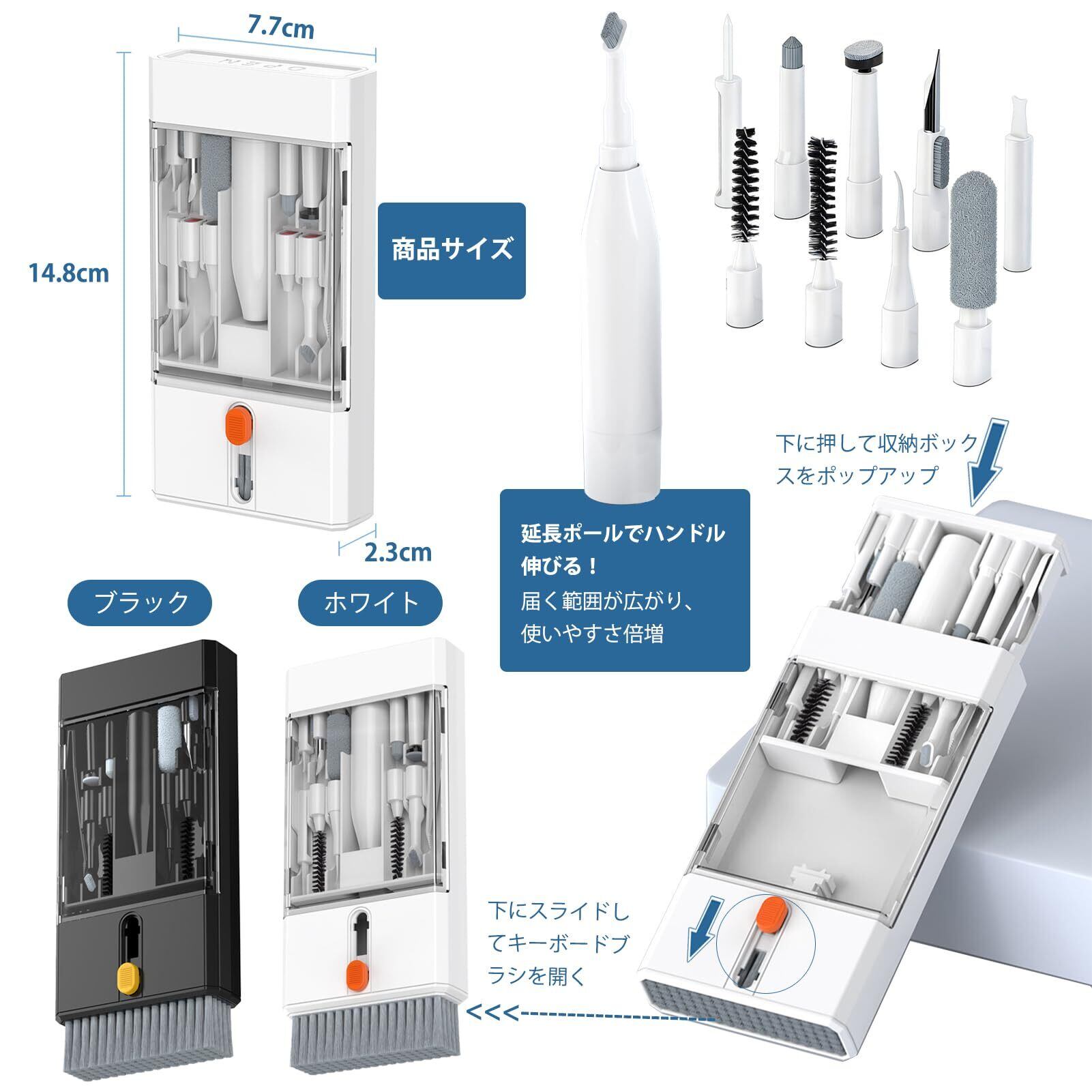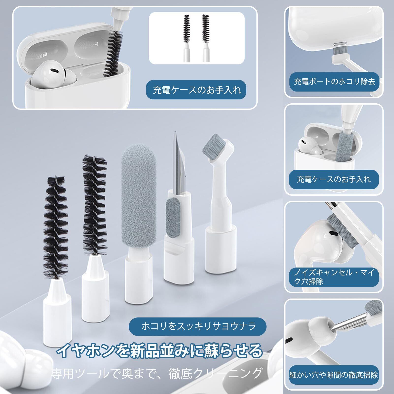 それぞれのクリーナーには独立した機能があり、キーボード、イヤホン、スマホ、画面、パソコンなど、様々な電子機器に対応しています。
