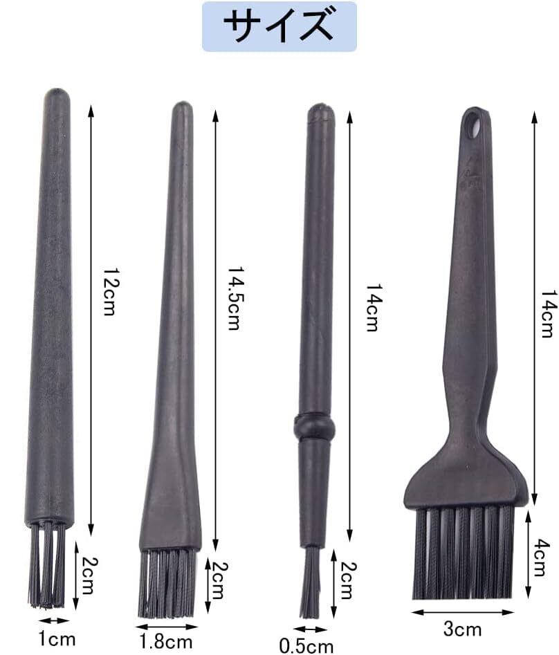 サムコス クリーニングブラシ 4本セット 静電気防止 除電ブラシ 掃除用ブラシ キーボード用/パソコン/基板/USBポート/スマホ/ファンなど対応 プラスチックハンドル