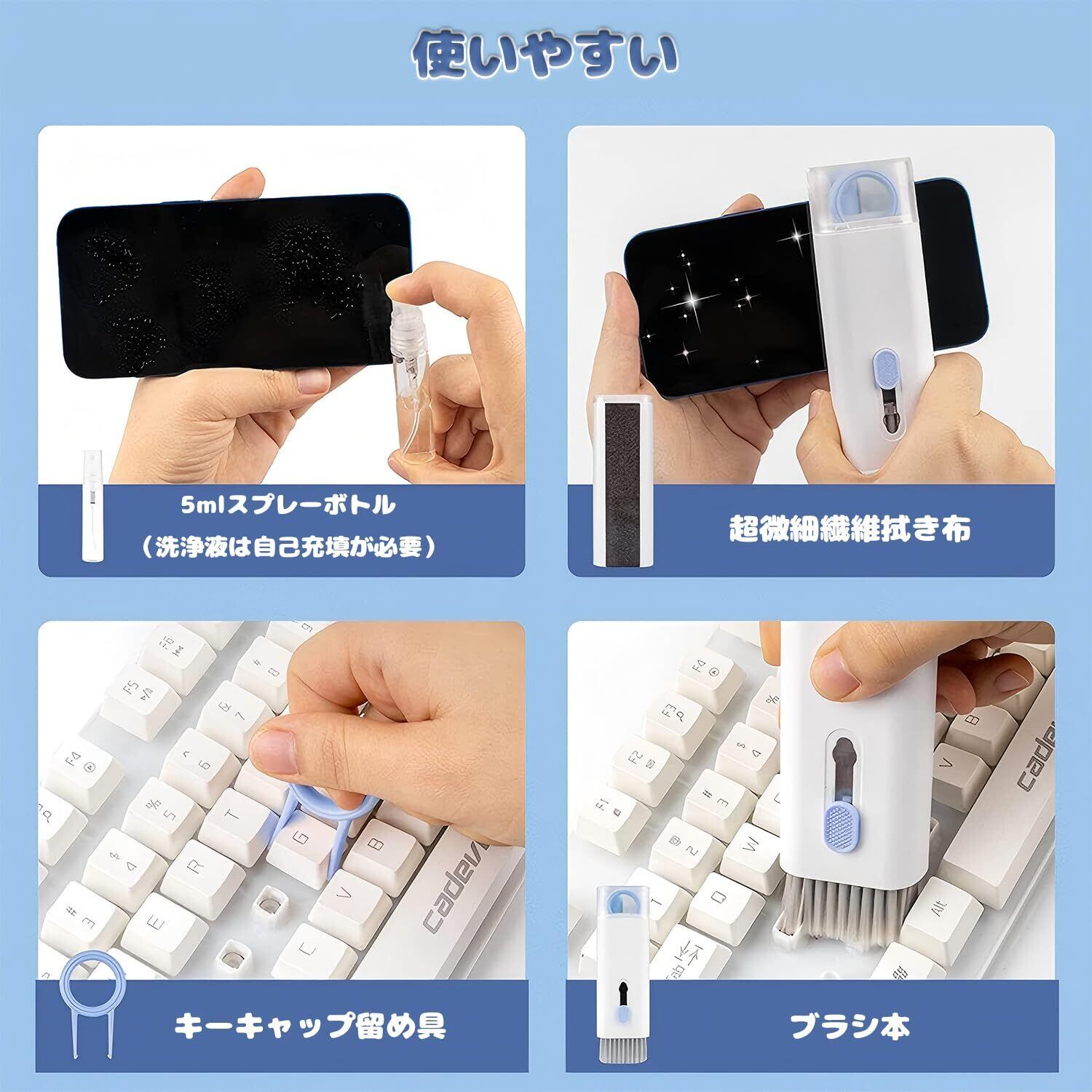 1.【多機能7-in-1、多シーン対応で清掃を全方位カバー】キーボードブラシ、折りたたみクリーニングペン(シリコンヘッド+ミニブラシ+ファブリックヘッド)、キーキャップリムーバー、超微細ファイバークロス、スプレーボトルなど7種類のツールを融合。キーボードの隙間のほこり、ワイヤレスイヤホンの穴の汚れ、スマホ画面の指紋など、あらゆるお手入れを解決。一台でキーボード、イヤホン、スマホなど様々なデジタル製品の清掃ニーズを満たします。 2.【コンパクトで持ち運び便利、いつでもどこでも汚れを撃退】全体的にコンパクトな設計でポケットに入るサイズ。出張やオフィスでの使用も気軽に携帯可能。コンポーネントは整然と収納され、素早く分解・組み立てが可能で、シーンを選ばず清掃できます。 3.【細部までこだわったクリーニング技術、死角の汚れを完全分解】キーボードブラシは適度な硬さの毛先で、キーキャップの隙間までしっかり除去。折りたたみクリーニングペンは多角度でのお手入れが可能で、イヤホン端子の穴、キーキャップの隙間、イヤホンケース内壁などの細かい部分も、シリコンヘッド、ミニブラシ、ファブリックヘッドでピンポイント清掃。クリーニングの死角をなくします。 4.【高品質素材、耐久性と清掃力を両立】ブラシ毛やクロスは耐磨耗性かつ高い吸着力で、繰り返し使用しても変形や毛抜けしにくい設計。プラスチック部品は頑丈で、折りたたみ構造は繰り返しの開閉でもなめらか。長期間使用しても清掃効果が持続します。 5.【誰でも簡単操作、初心者も即クリーニングの達人に】スプレーボトルでシュッとひと吹き、クロスでさっと拭くだけで画面がぴかぴかに。キーキャップリムーバーで挟んで引き抜くだけで、キーボードの深部まできれいにするのが簡単に。全ツールの操作は直感的でスキル不要。数分でデジタル機器を新品同然に蘇らせます。