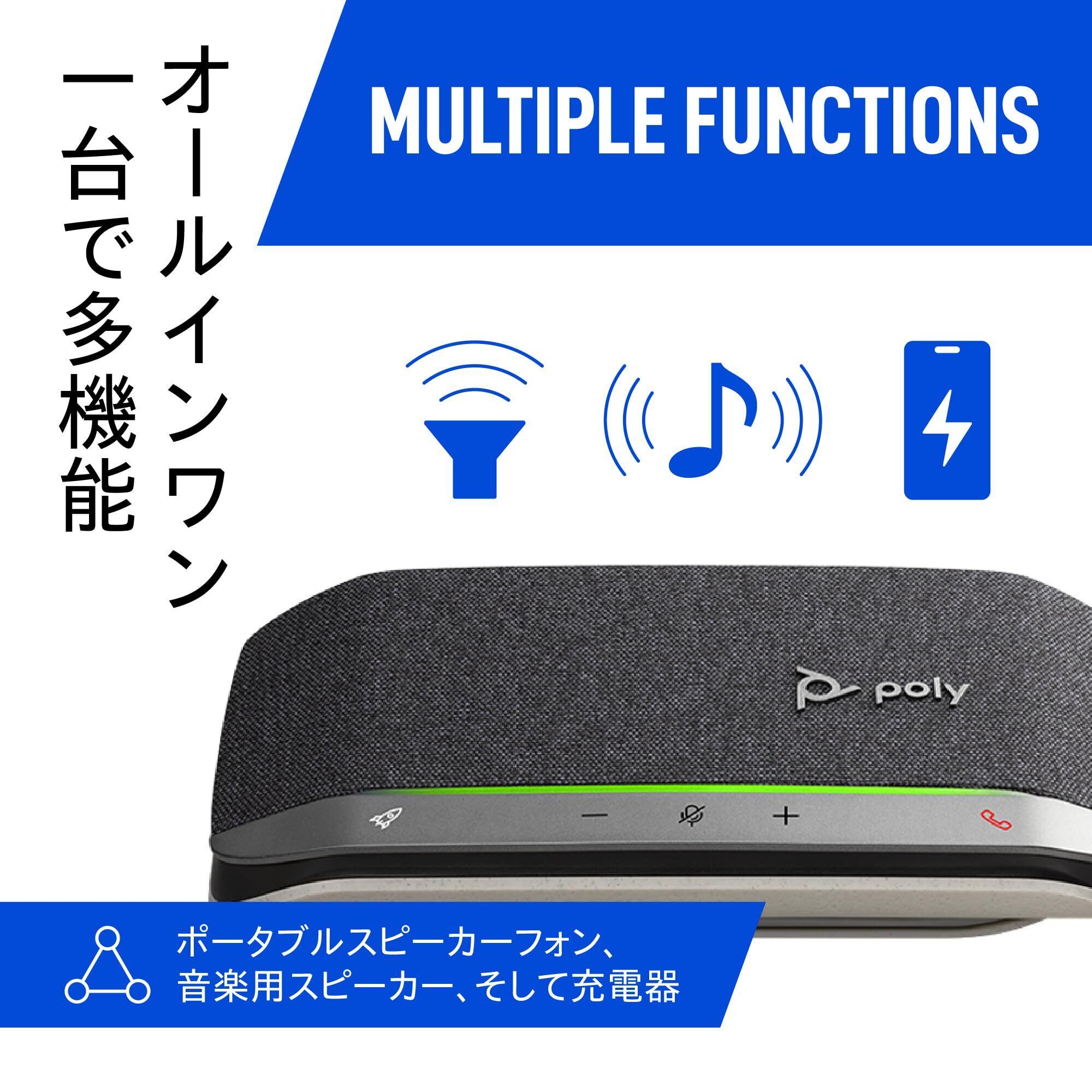 Poly スピーカー Sync 20 (国内正規品) Bluetooth & USB-C有線 最大20 時間 ノイズおよびエコー低減 モバイルバッテリー ポータブルスピーカー 会議用マイクスピーカー 防水スピーカー ブルートゥース スマートフォン PC 8G0X5AA