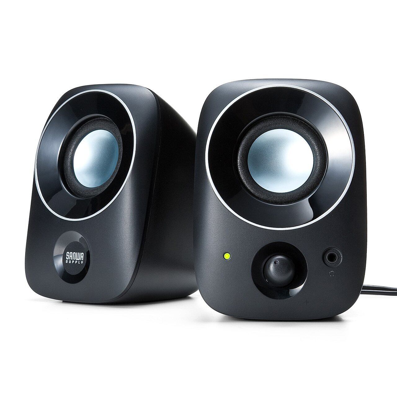 サンワダイレクト PCスピーカー 小型 USB電源 3.5mm接続 ヘッドホン対応 1個 400-SP067