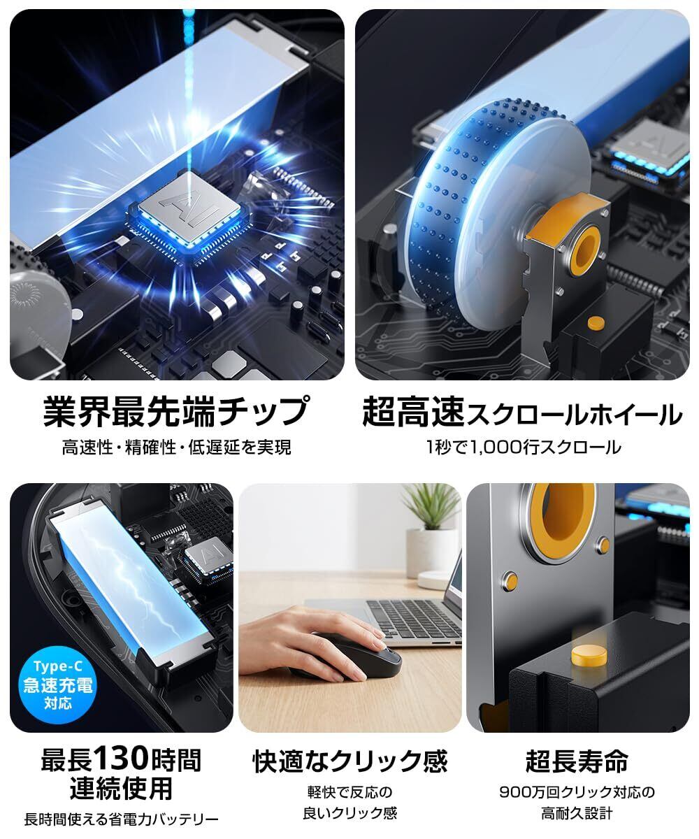特徴 エルゴノミックデザイン, サウンドレス, タッチスクロール, ポータブル, リチャージャブル, ワイヤレス, 耐水, 軽量