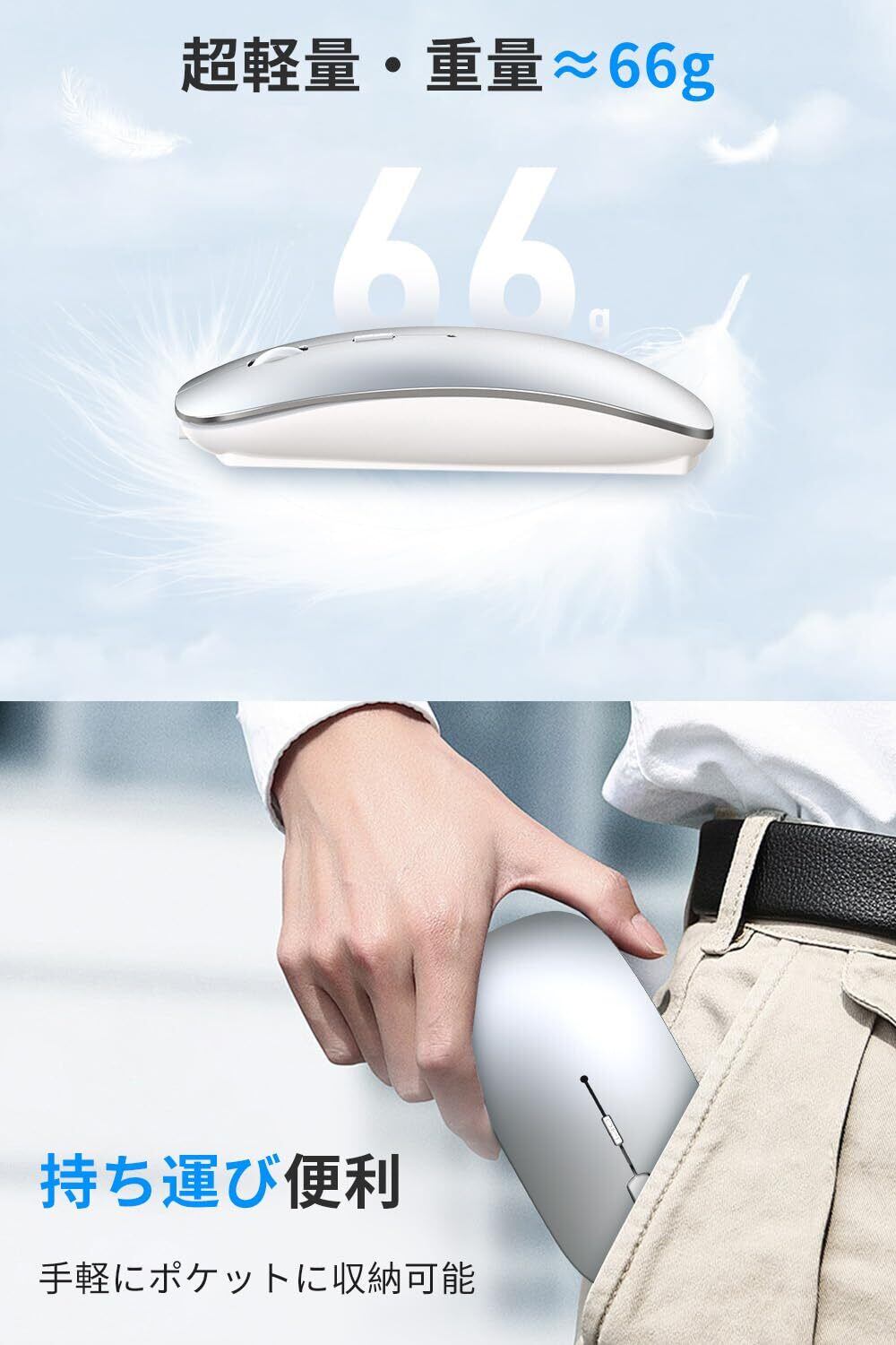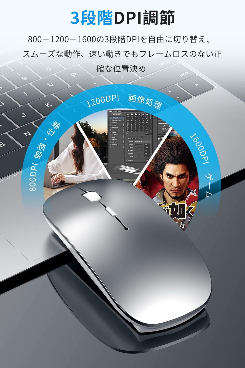 マウス Bluetooth Type-C充電式 ワイヤレスマウス 2.4GHz光学式 3dpi切替 静音 薄型 小型 無線マウス 高精度 左右対称 持ち運び便利 TELEC認証取得済み Mac/Windows/Surface/Macbook/iPad/PC/iPhone/Android/スマホ対応に対応 (Type-c口/シルバー)