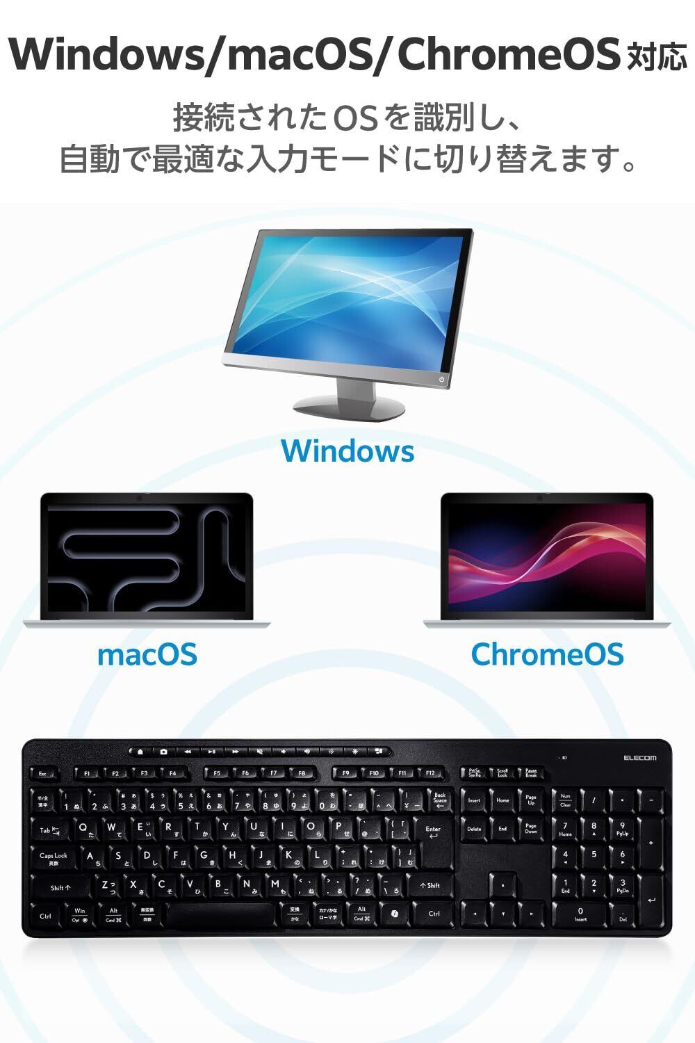 ■Windows/macOS/ ChromeOS に対応。接続されたOSを識別し、自動で最適な入力モードに切り替えます。