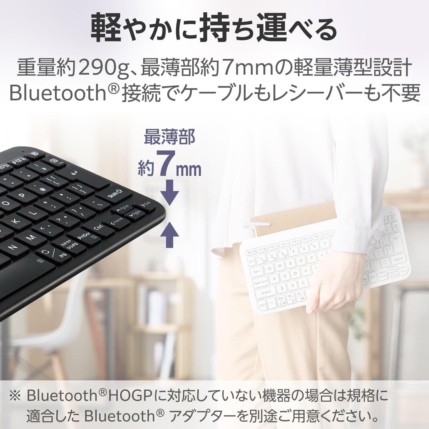 ■軽やかに持ち運べる重量約290g、最薄部約7mmの軽量薄型設計。