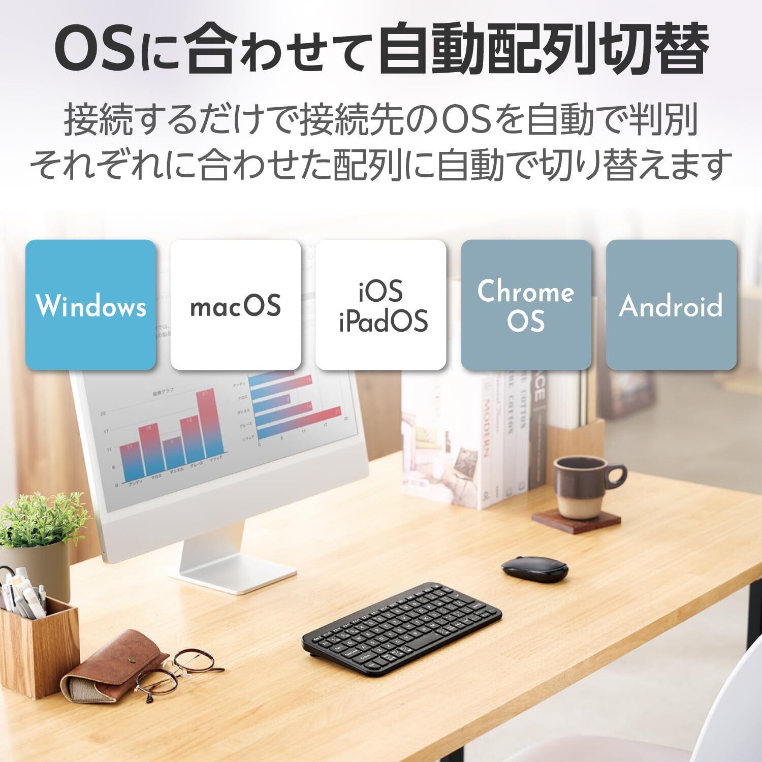 ■独自のファームウェアを搭載することにより、Windows、macOS、 ChromeOS 、iOS/iPadOS、Androidを自動で識別し、各OSに最適な入力モードに切り替えます。