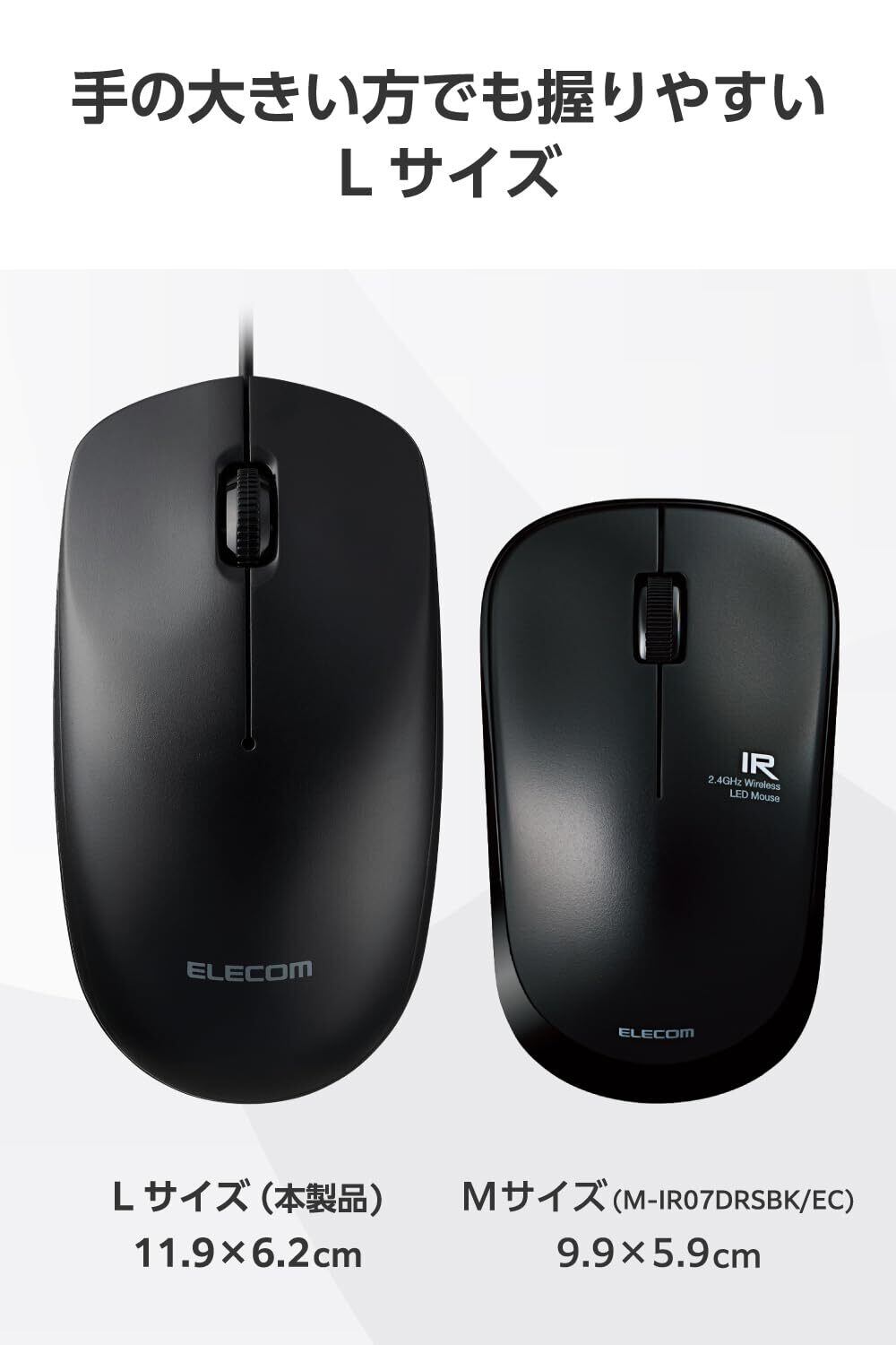 エレコム マウス 有線 3ボタン 左右対称 Lサイズ ブラック M-LE10URABK
