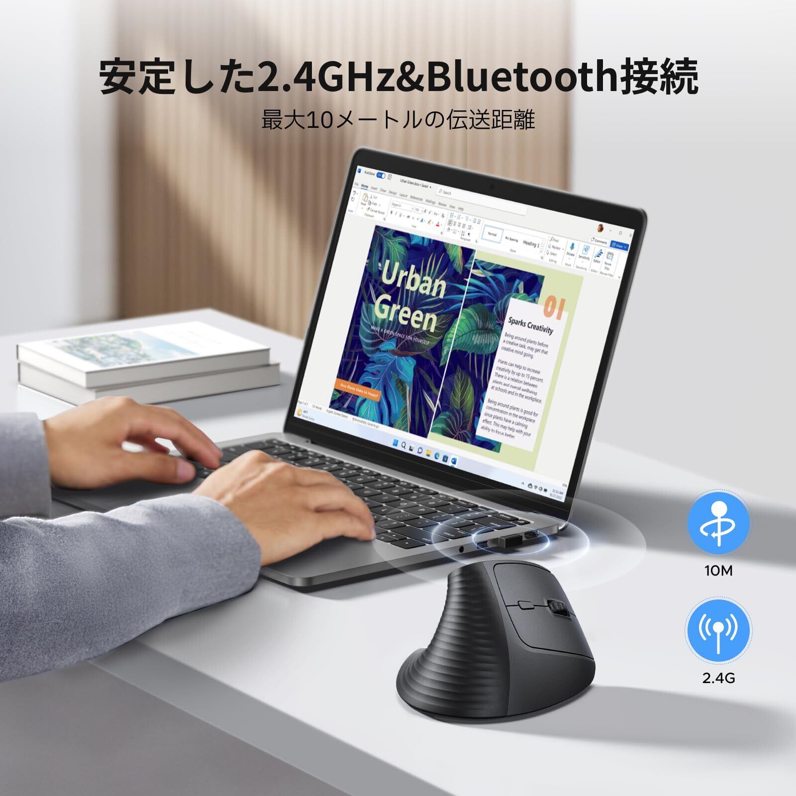 UGREEN ワイヤレス マウス Bluetooth & 2.5G 無線マウス 縦型 人間工学デザイン 6ボタン 静音マウス 1000/1600/2000/4000 DPI切替可能 電池式 Windows/Mac OS/Chromebookなどに対応