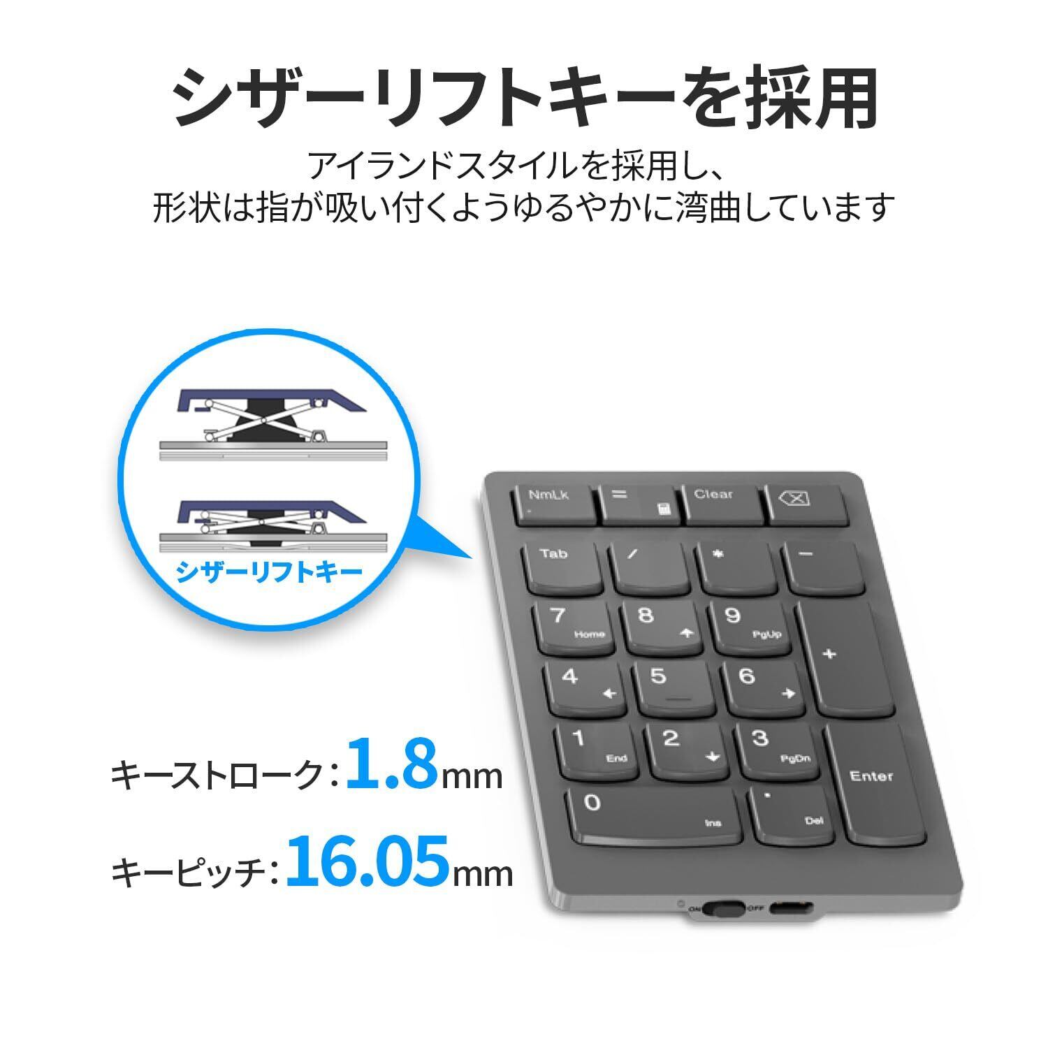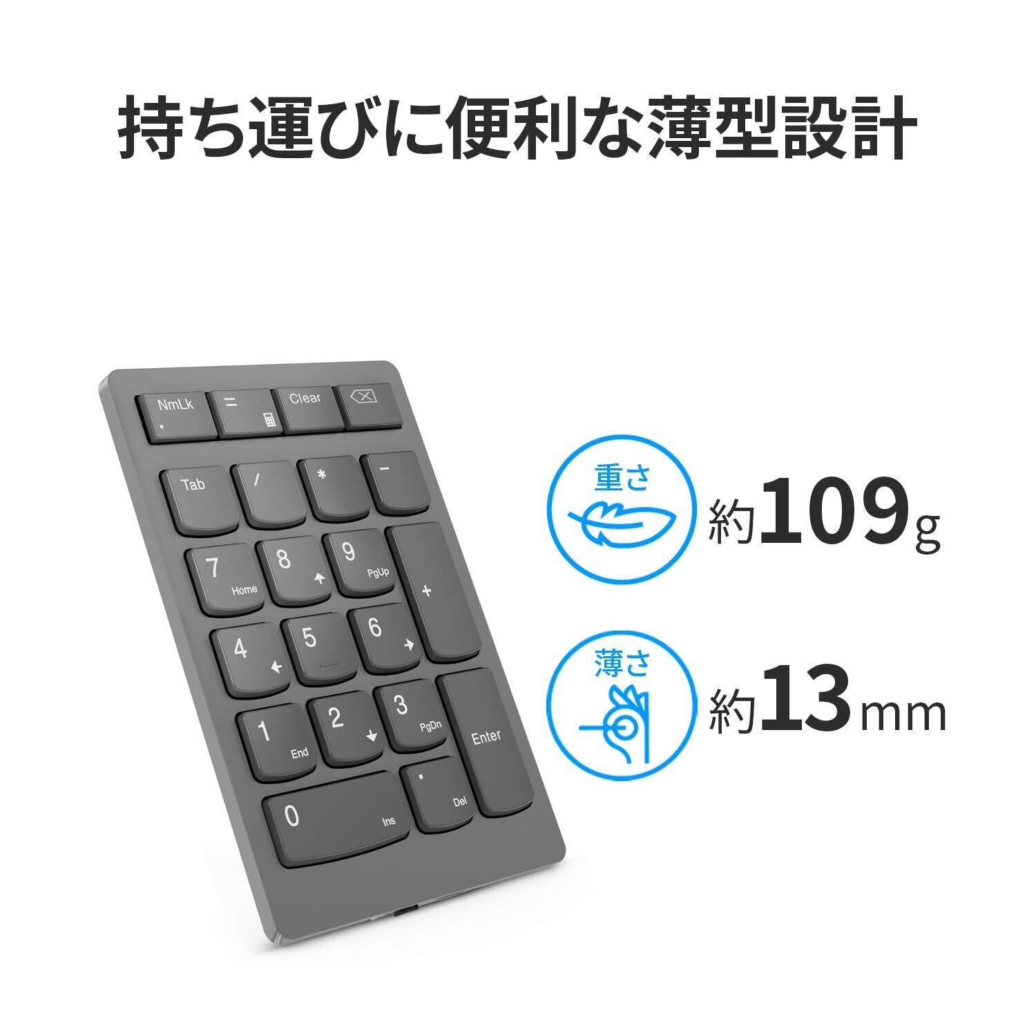 Lenovo Lenovo Go ワイヤレス 数値キーパッド 2.4G USB Type-A ワイヤレスレシーバー接続 テンキー シザーリフトキー Tabキー付き クリアキー付き 電卓アプリ起動ボタン 軽量 コンパクト グレー 4Y41C33791
