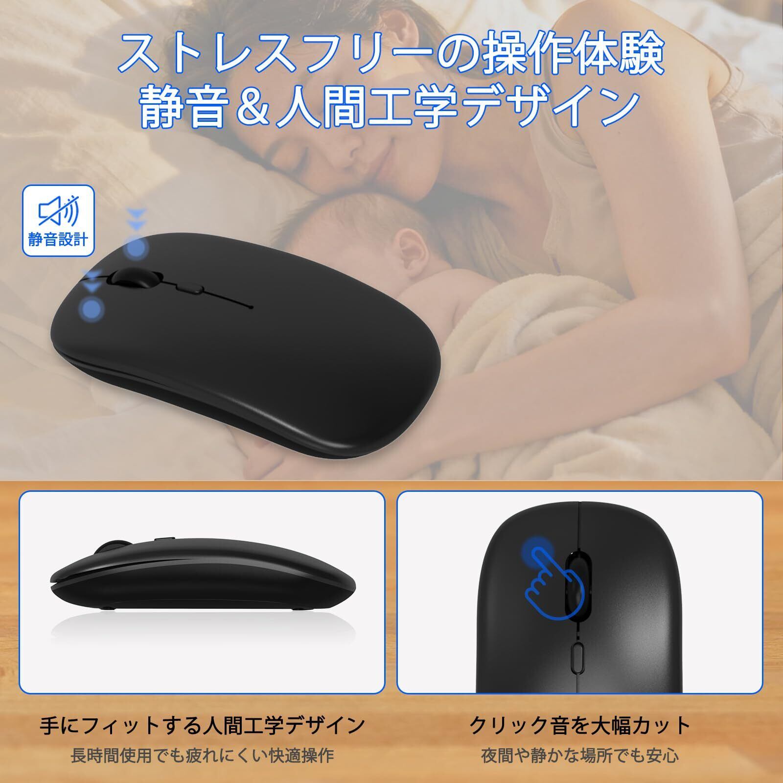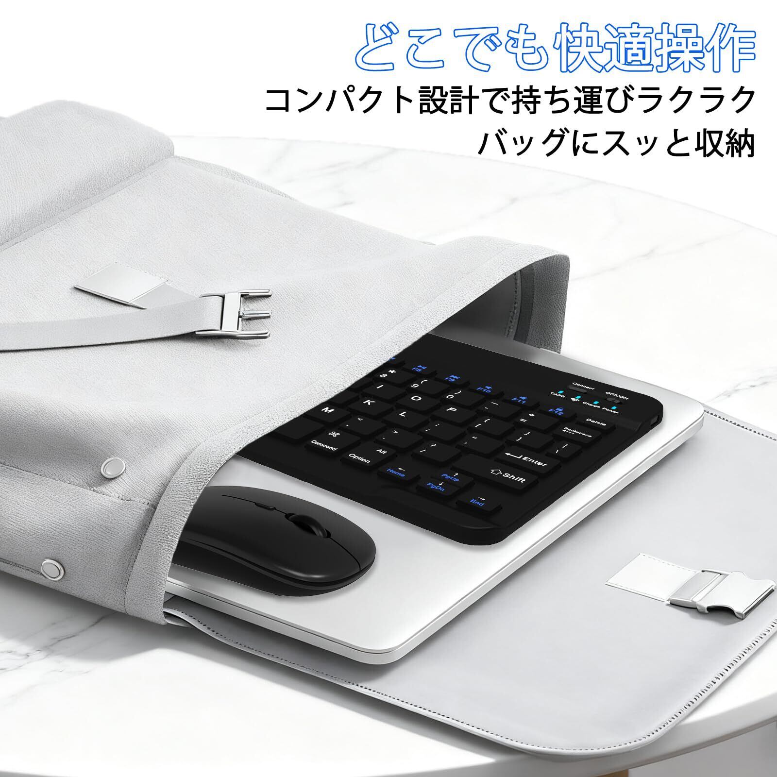 . 【軽量コンパクト&スマート省電力で持ち運びに便利】 キーボードは約170g、マウスは約47gと軽量で薄型のコンパクト設計。バッグにすっきり収納でき、出張やカフェ作業など外出先での使用に最適です。キーボードはUSB充電式で経済的。10分間操作がないと自動でスリープ入る省電力機能搭載で、バッテリー消費を抑えます。