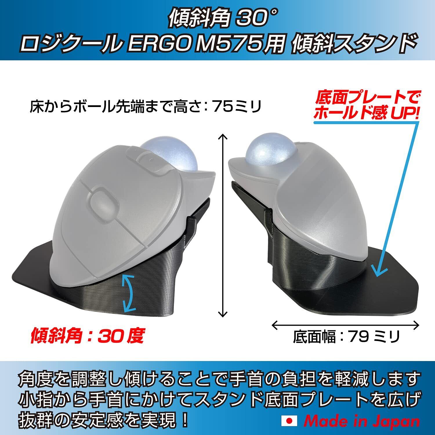 【日本製】傾斜角30度。床からボール先端まで高さ約75mm。Logicool(ロジクール)M575トラックボールマウス用 傾斜スタンドです。角度を調整し傾けることで手首への負担を軽減します。※トラックボール本体は付属しません、スタンドのみの商品です。