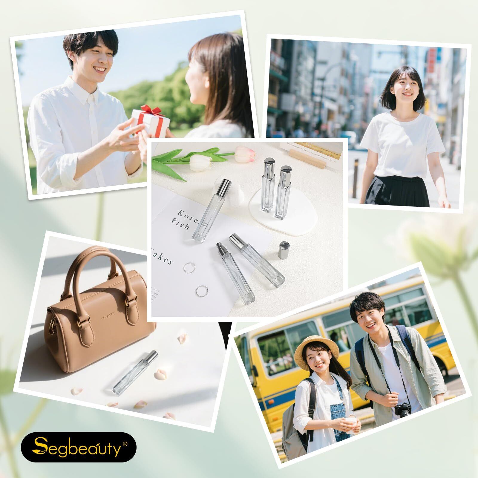Segbeauty アトマイザー 10ml 5個入り グレー 細長型 ガラス製 プッシュ式 詰め替えボトル 漏れない ミニボトル スプレーボトル 携帯用 おしゃれ コンパクト 旅行 パフューム かわいい 霧噴射 簡単 移し替え メンズ レディース 手軽 便利 小分け ミスト スタイリッシュ
