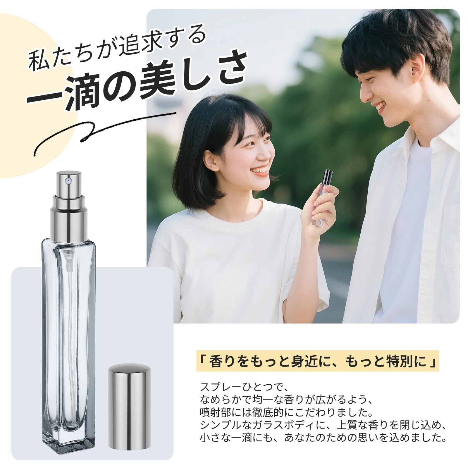 【香りロスゼロ設計】化学的に安定した高品質ガラス製で、香水のオリジナルノートを新鮮に保持。微細ミスト噴射システムが肌や衣類に均一に香りを定着させ、本来の香りを再現します。