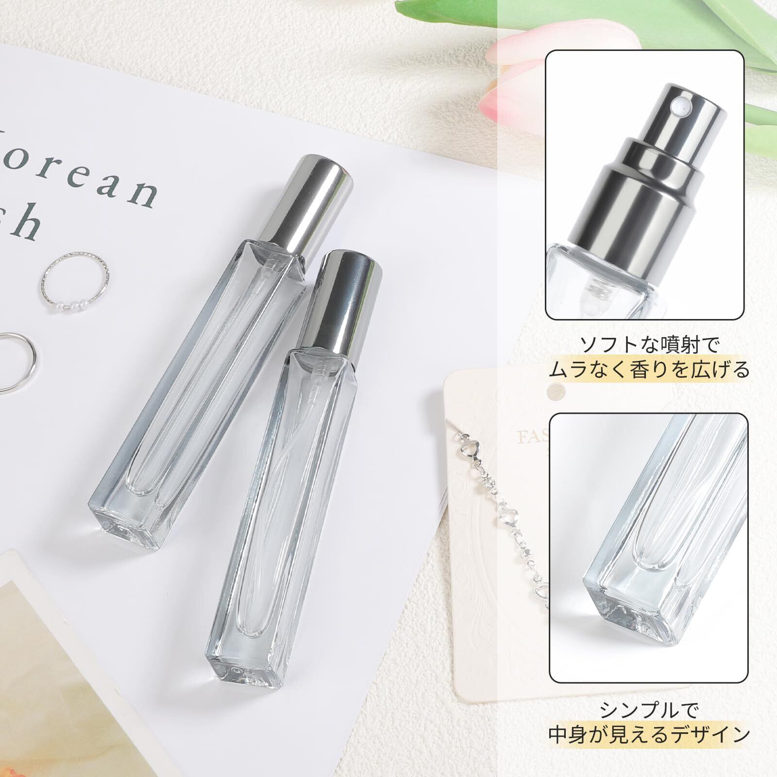 【多用途使用可能】 香水以外にも化粧水、アルコールなどの詰め替えに活用可能。 透け感のあるボトルで中身の量を一目でわかります。