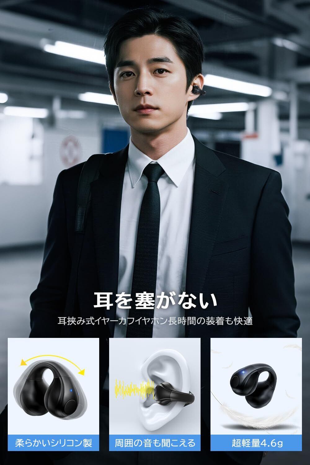 【数量限定】イヤホン bluetooth ワイヤレスイヤホン 最先端Bluetooth6.0技術 オープンイヤーイヤホン 耳挟み型 60時間再生 通話ノイズキャンセリング Hi-Fi音質 AAC/SBCに対応 ブルートゥースイヤホン 自動ペアリング 音漏れ抑制 高感度ボタン操作 IPX7防水 Type-C充電 通勤/運動 技適認証済