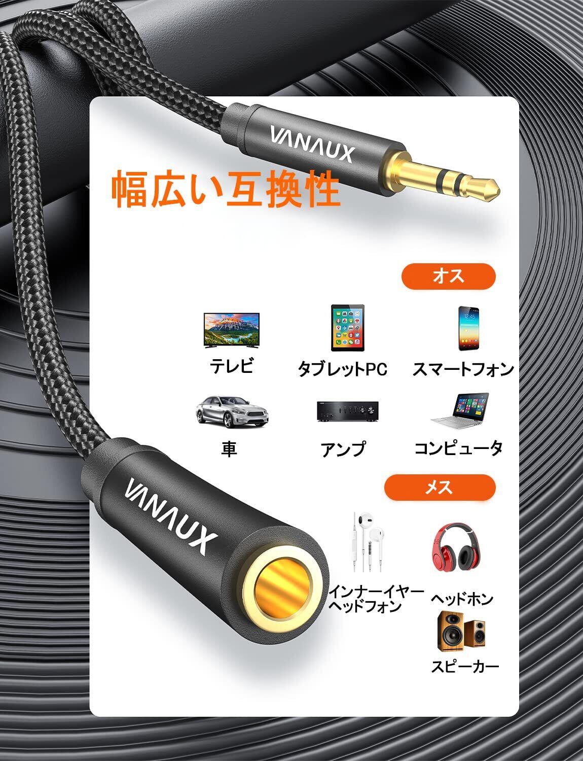 【卓越した音質】VANAUX イヤホン 延長コードは24Kゴールドメッキを施したコネクタを採用しており、信頼性を確保しています。信号の劣化、接続不良を防止し、外部からのノイズを最大限度抑制します。スタンダードな3.5mm抗酸化ジャックで、本来のオーディオの音質を高品質で保持する設計です。お客様のデバイスにクリアなステレオオーディオをご提供し、より純粋な音質にしてくれます。