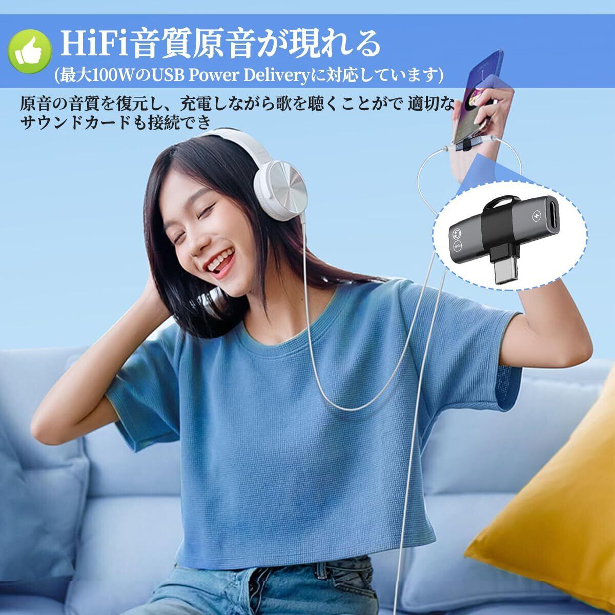 2in1 タイプC イヤホン変換 アダプタ 音楽聞きながら充電でき Type-C to デュアルUSB-C イヤホンジャック PD 100W急速充電 DAC搭載 Hi-Fi音質 通話/音量調節/音楽対応 Phone16シリーズ/15/Android/Pad/Type Cなど機器に適用(グレー)