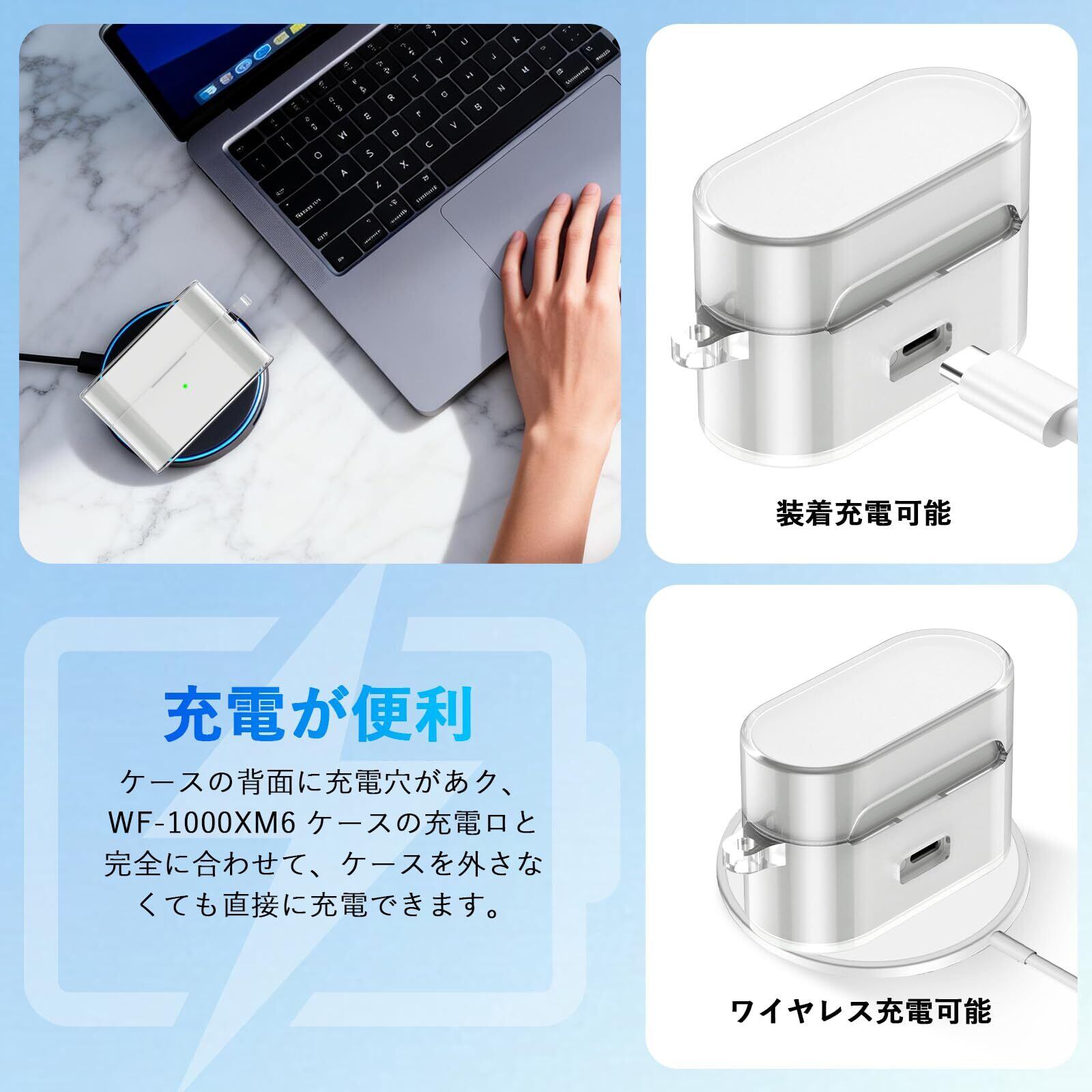 【充電が便利】有線充電でもワイヤレス充電でも対応いたます。ケースの背面には充電穴があり、WF-1000XM6の充電口と完全に合わせて、ケースを外さなくても直接に充電できます。
