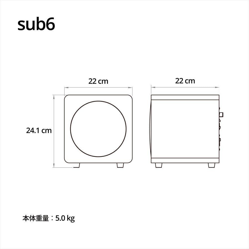【正確で豊かな低音】Sub6は、音楽・映画・ゲームに深みと明瞭さを加える正確な低音を再生します。200Wアンプと6インチウーファーを搭載し、豊かでコントロールされた低域を実現。自然なバランスで低音を補強します。