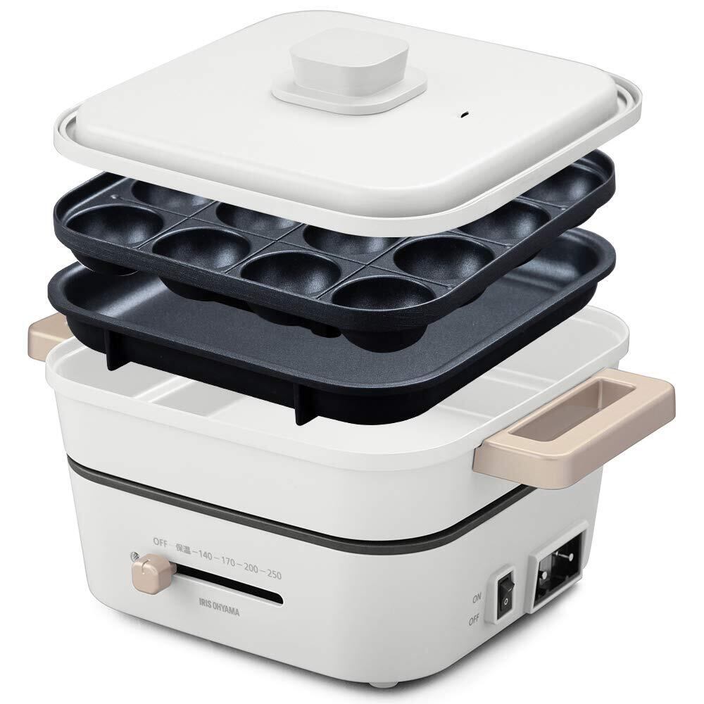 【新着商品】アイリスオーヤマ ホットプレート グリル鍋 3枚プレートセラミックコート鍋 たこ焼き 平面プレート IGU-P3-H ライトグレー