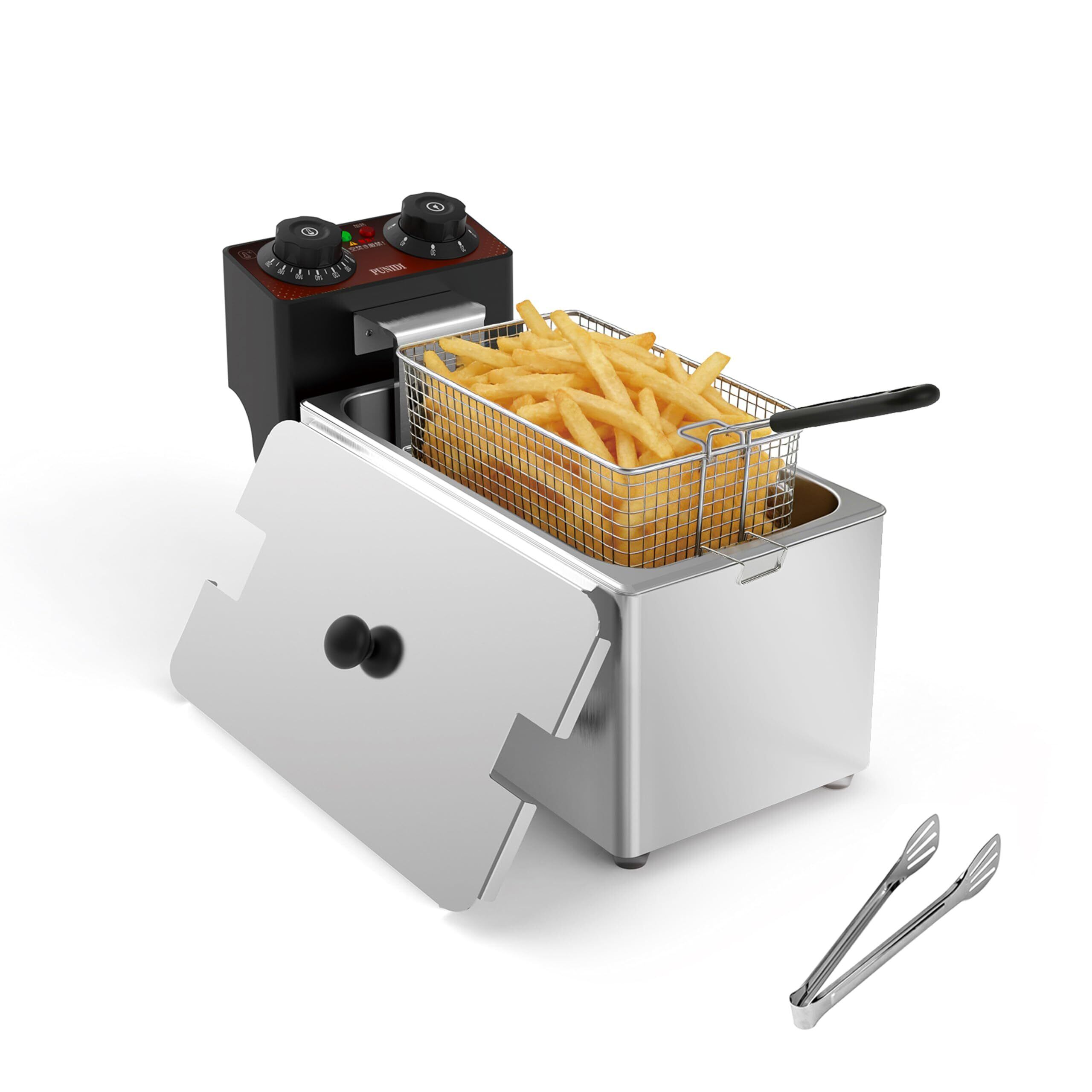 【特価商品】4L 電気フライヤー 4L 家庭用 業務用 卓上 タイマー付き 100V 1500W 5リング加熱管 急速予熱 60~200℃ 精密温度調節 自動保温 ステンレス油槽 ステンレス製フライバスケット付き フライドポテト/フライドチキン/各種天ぷら用