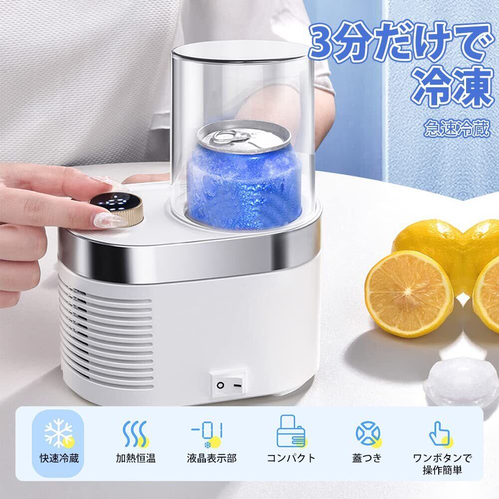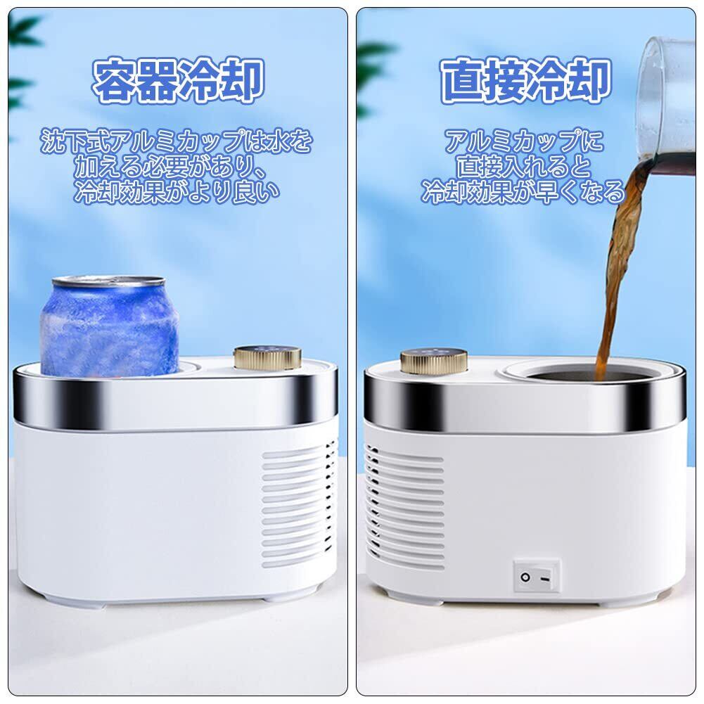 2種類の冷凍方法:流し込み式は、カップに飲み物や食べ物を入れて3分間冷蔵するだけで-1℃が可能です。沈下式はカップに少量の水を入れた後、缶やベットボトルを入れて5分間冷蔵するだけで-1℃が可能です