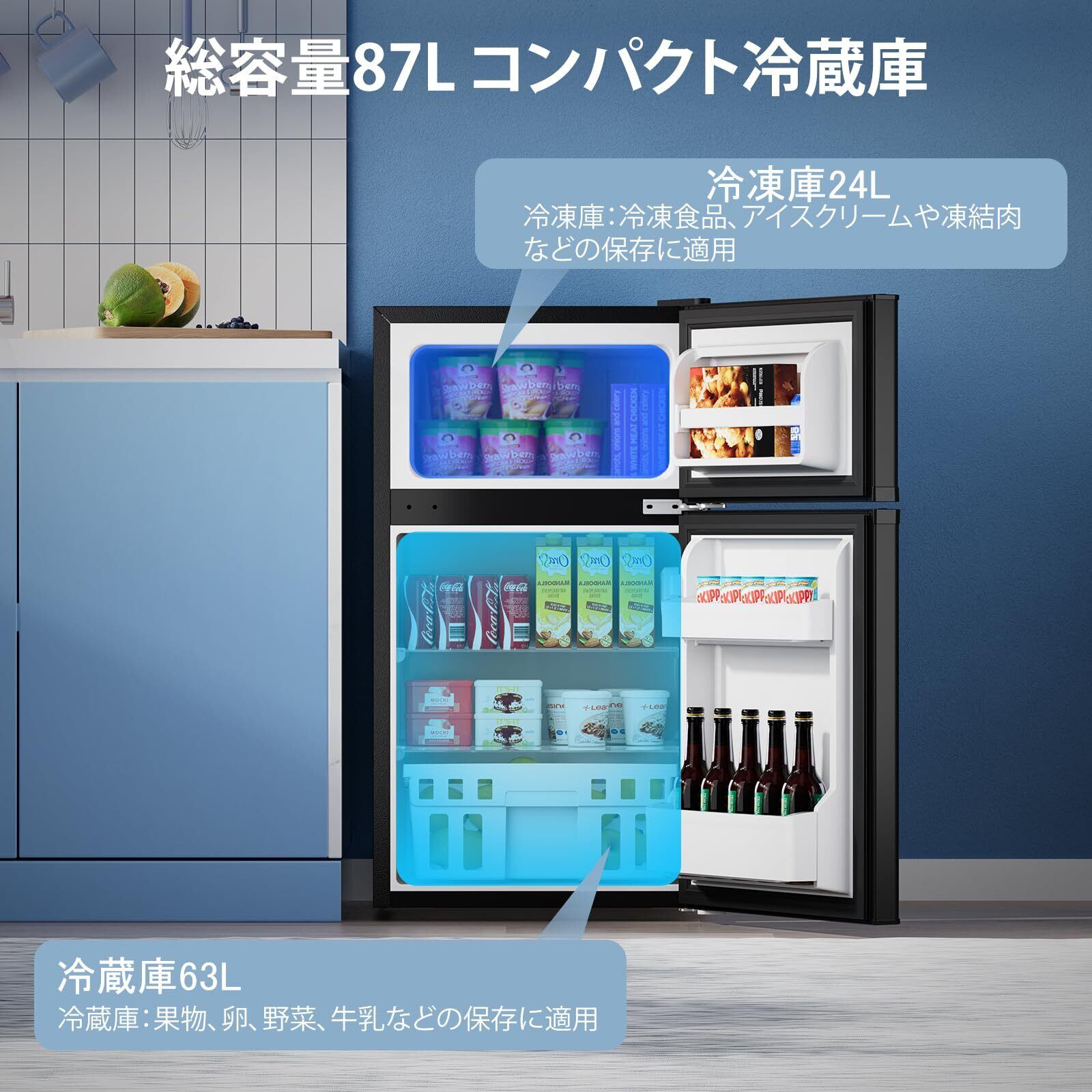【在庫セール】COWSAR 小型冷蔵庫 87L 小型 一人暮らし 家庭用に最適 2 ドア 耐熱天板付き 両開き コンパクト 静音 冷蔵庫63L 冷凍庫24L 3段階温度調節 鮮度長持ち 強力コンプレッサー (ブラック)