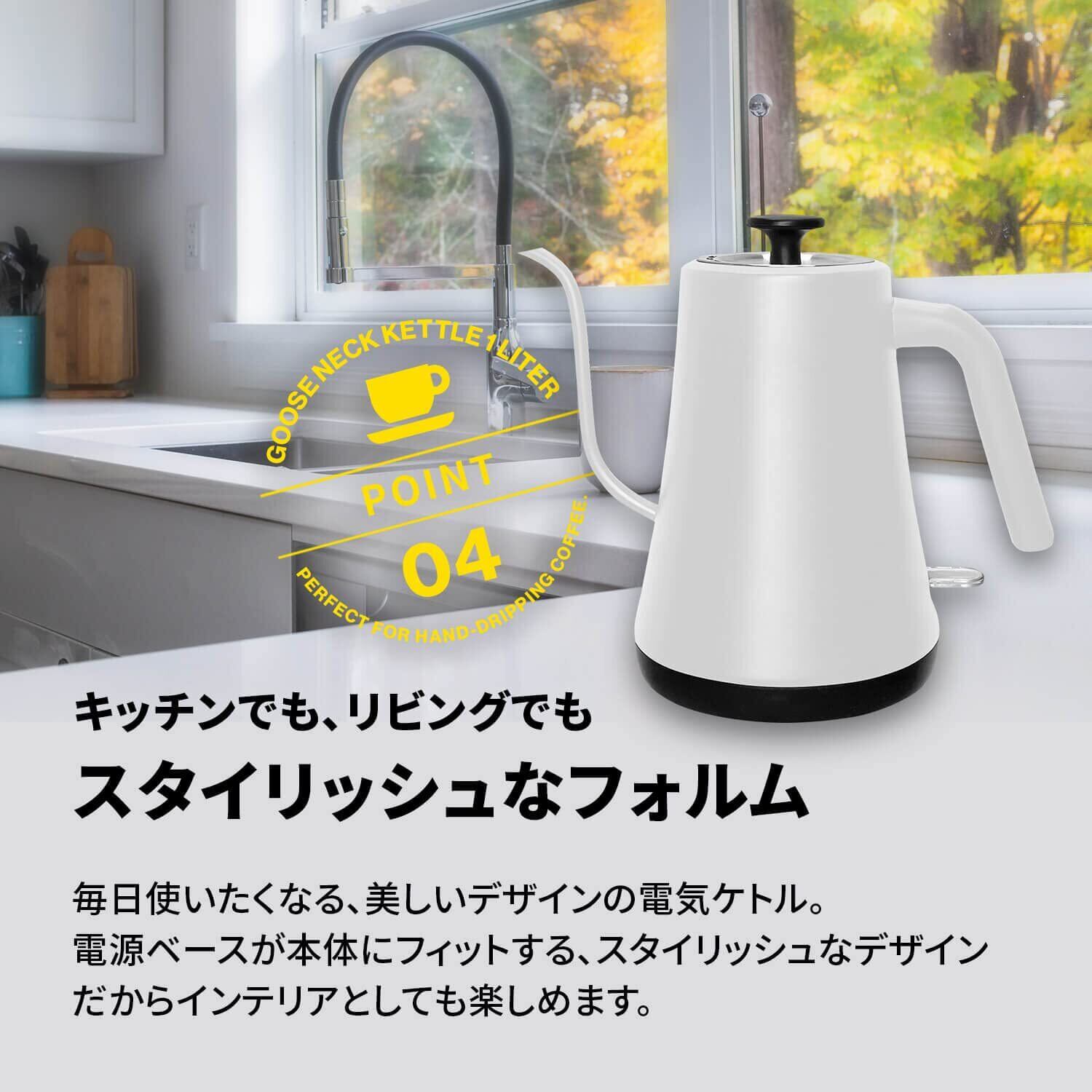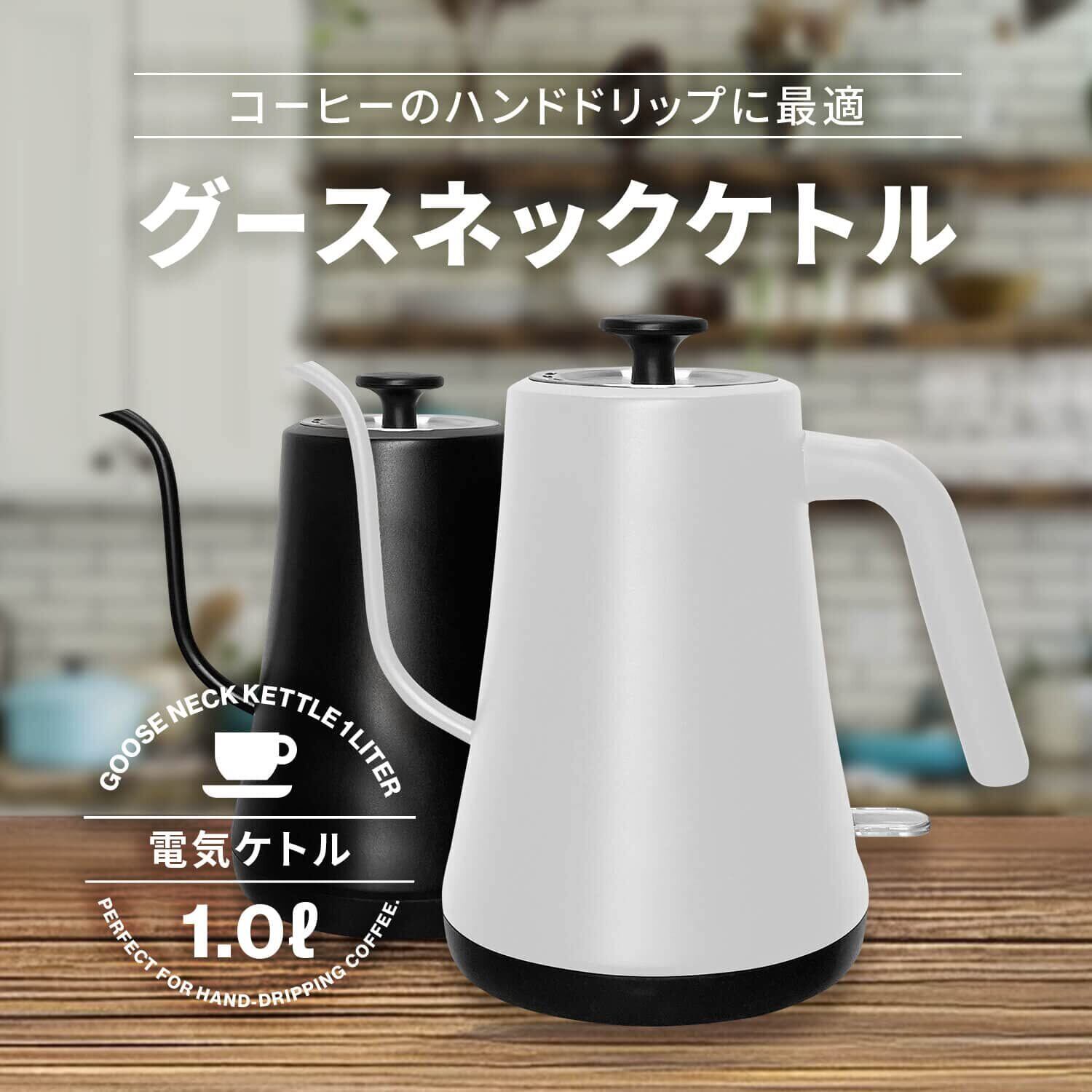 ステンレス ドリップポット 電気ケトル ブラック 1.0L 細口 グースネック ステンレスケトル 湯沸かしポット 1000ml 電気ケトル ドリップ ポット 細口 コーヒー i001