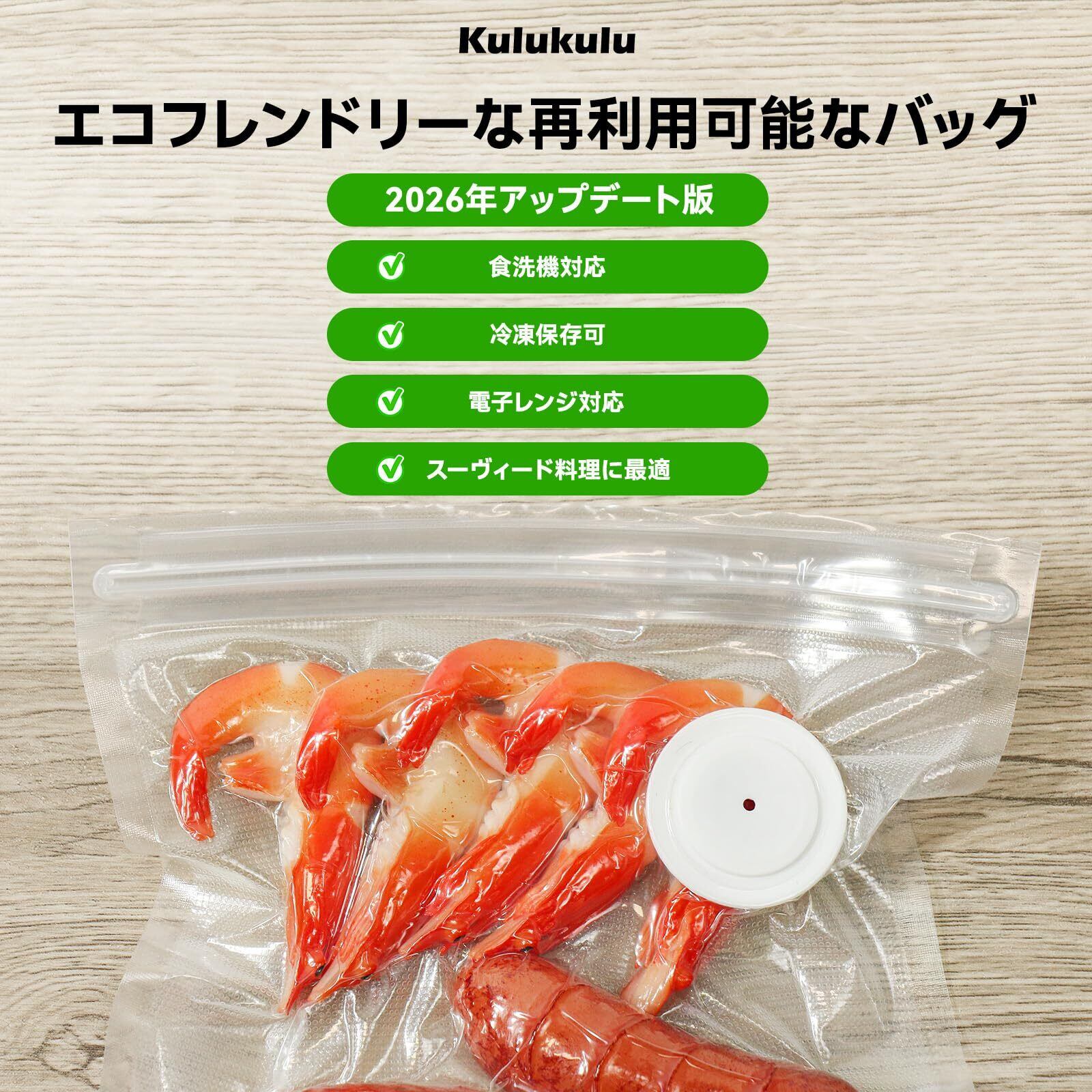 【数量限定】Kulukulu真空シーラーセット、食品保存および真空調理用のポータブル真空シーラーマシン + 再利用可能な真空シールバッグ30枚 (Mサイズ15枚 + ビッグサイズ15枚)。