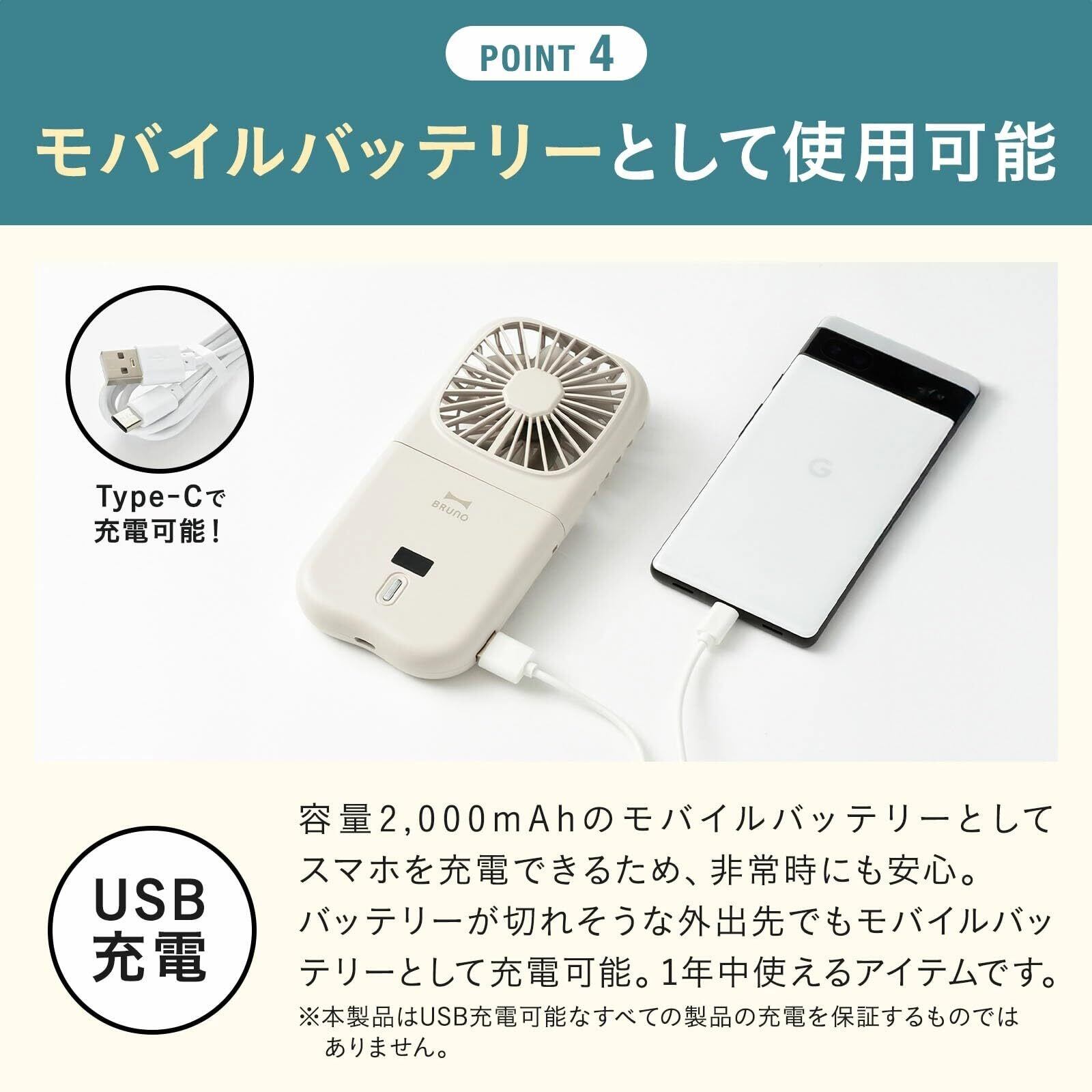 BRUNO ブルーノ 携帯扇風機 ハンディファン 小型 5WAY フォールディングファン Type-C充電 モバイルバッテリー 風量 4段階 ストラップ付 グレージュ BDE068-GRG
