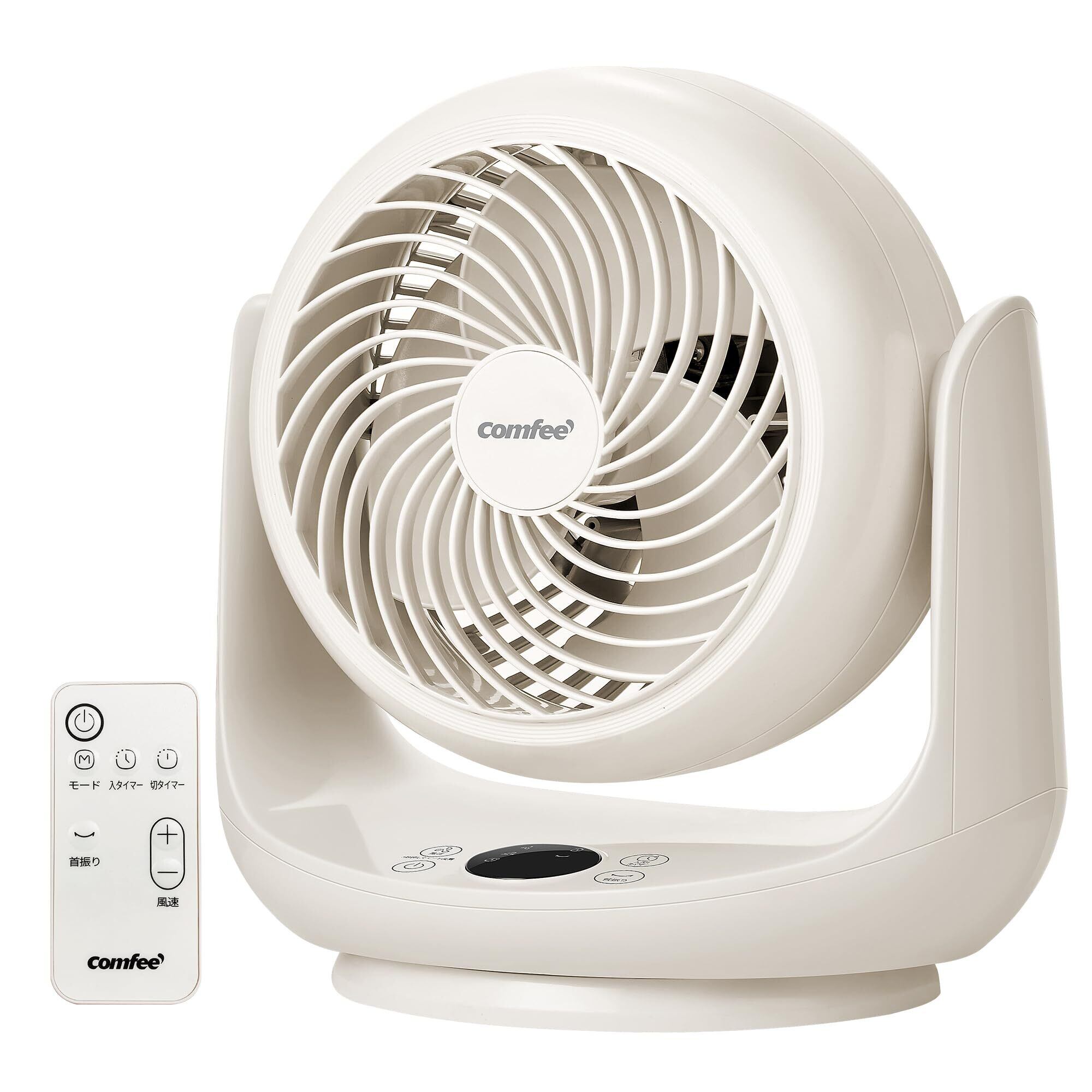 COMFEE' サーキュレーター 静音 28畳 扇風機 兼用 左右自動首振り 上下角度調節 リモコン付き 3モード 風量9段階調節 1~9h タイマー機能 強力送風 省エネ 小型 卓上/洗面所 一台多役 換気/空気循環/部屋干し/冷房 梅雨除湿 衣類乾燥 洗える 3枚羽根 軽量 ベージュ色