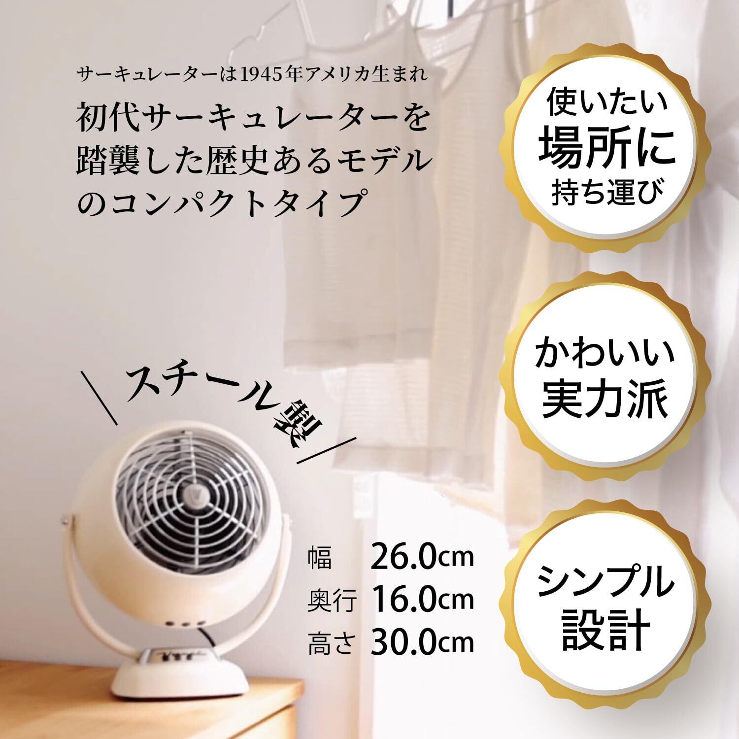 ボルネード サーキュレーター 10畳 レトロ パワフル 省エネ 花粉対策 梅雨対策 部屋干し 衣類乾燥 植物向き 2段階風量 2年 24時間365日使える ビンテージホワイト VFANJR-JP