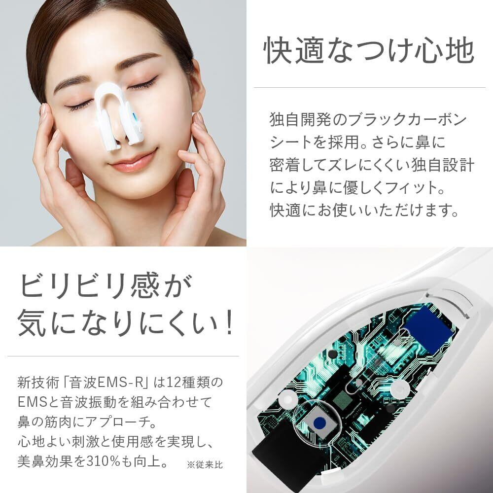 【音波タッピング×EMSの複合アプローチ】1分間に最大約12,000回の“音波タッピング”と、鼻専用に設計されたEMSプログラムを搭載。複数の刺激を組み合わせ、鼻周辺に心地よいアプローチ。
