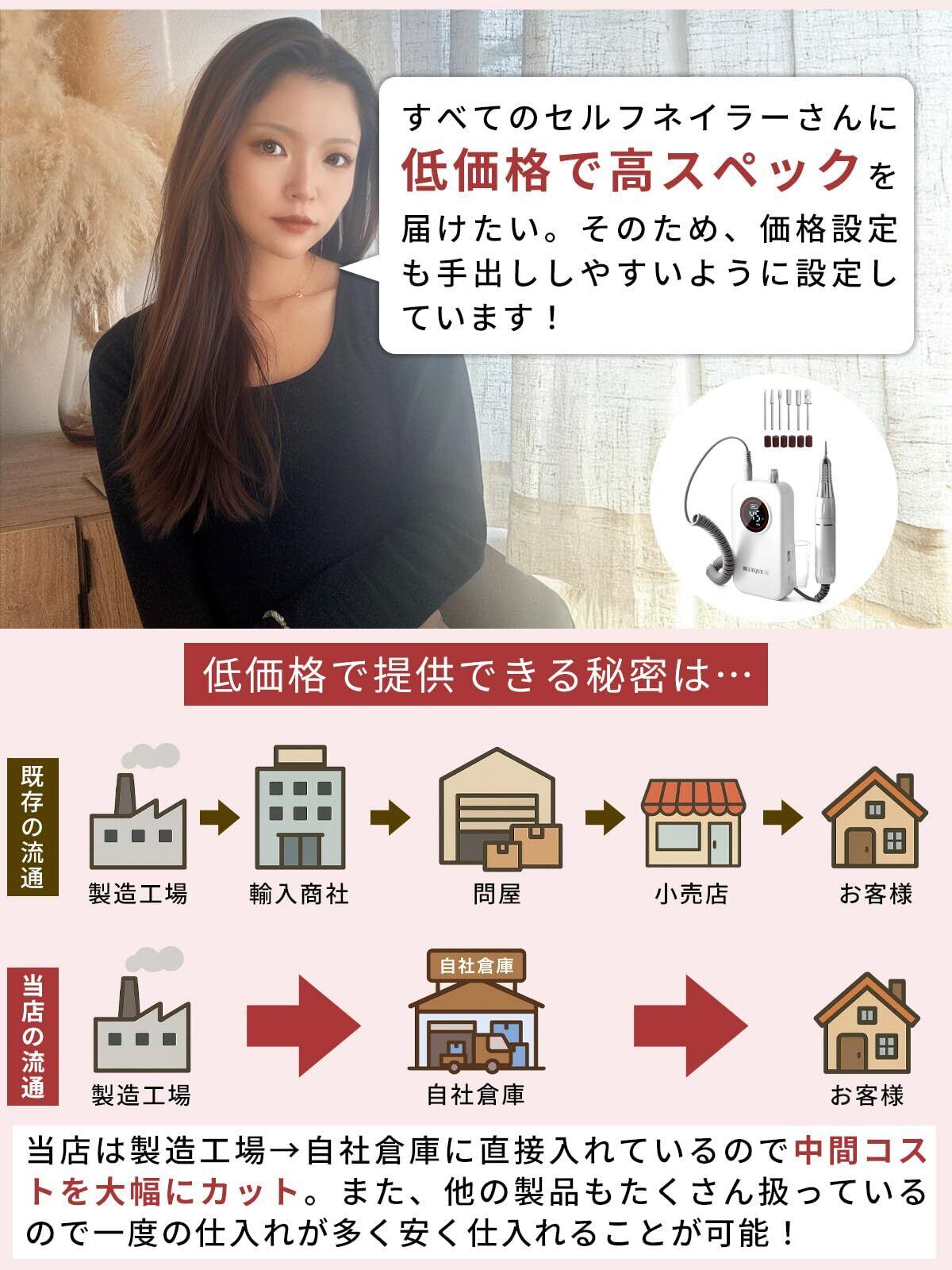 液晶ディスプレイや低振動・低騒音設計を採用し、ジェルオフから甘皮処理、スカルプ施術まで幅広く対応可能な1台。
