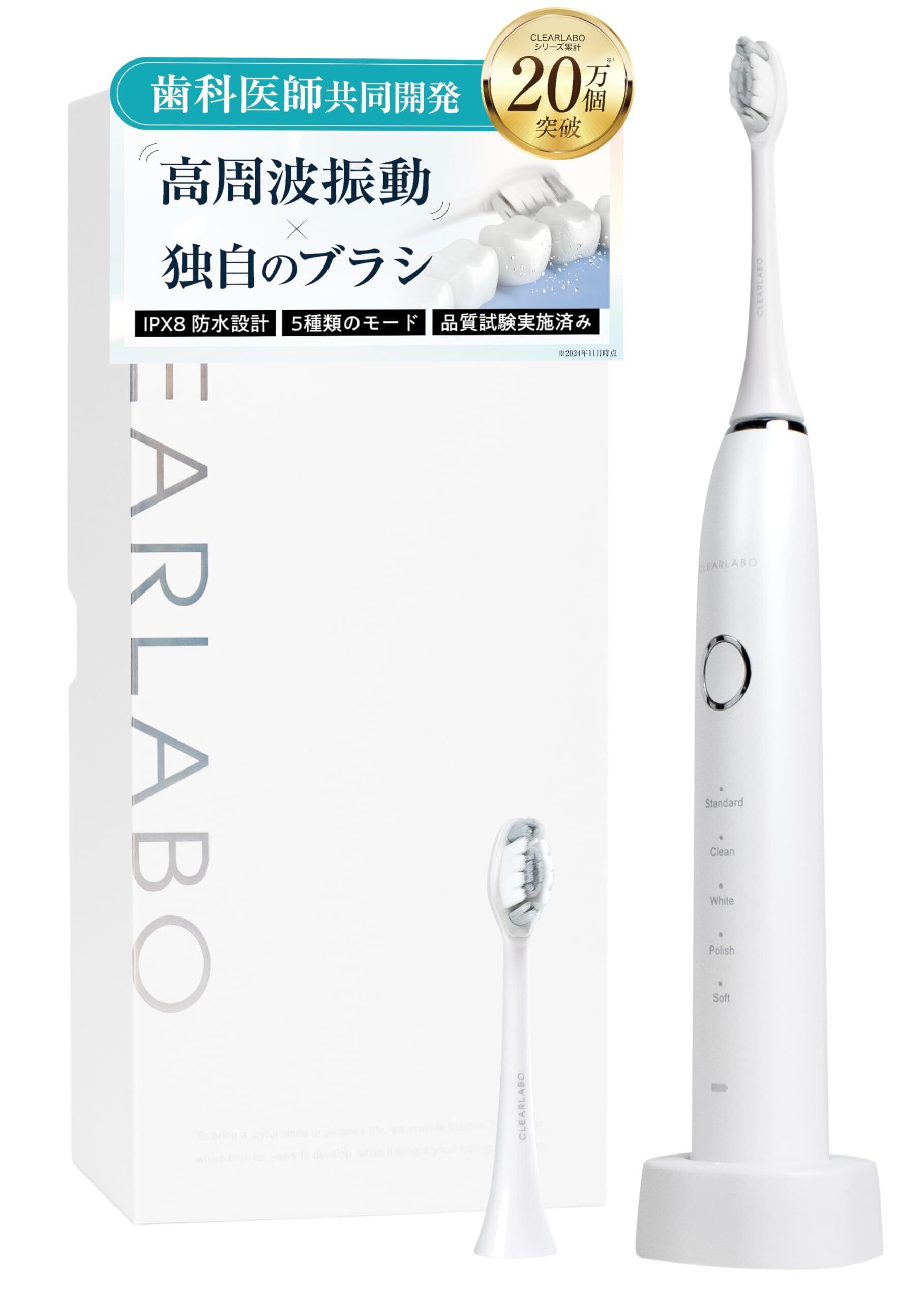 【日本企画安心サポート】お買い上げから最大1年以内に故障が発生した場合は、無償修理・交換いたします。修理・交換の際は取扱説明書兼書の提示が必要となりますので、大切に保管していただきますようお願いいたします。※定格電源DC5V-1A超の出力では正常に充電できない場合がございます。充電時には定格電源DC5V-1A相当のものをご使用ください。【付属品】本体(材質:ABS樹脂・PC)、ブラシヘッド×2(柄の材質:PP、毛の材質:PBT)、スタンド、充電用USBコード、日本語取扱説明書(書付き)※CLEARLABO専用品以外のブラシヘッドは使用できません。※ACアダプターの同梱はございません。別途ご用意ください。※初めての充電時や長期間使用しなかった場合、充電時間や使用時間が目安と大きく異る場合がありますが、通常何度か充電や使用を繰り返すと正常に戻ります。