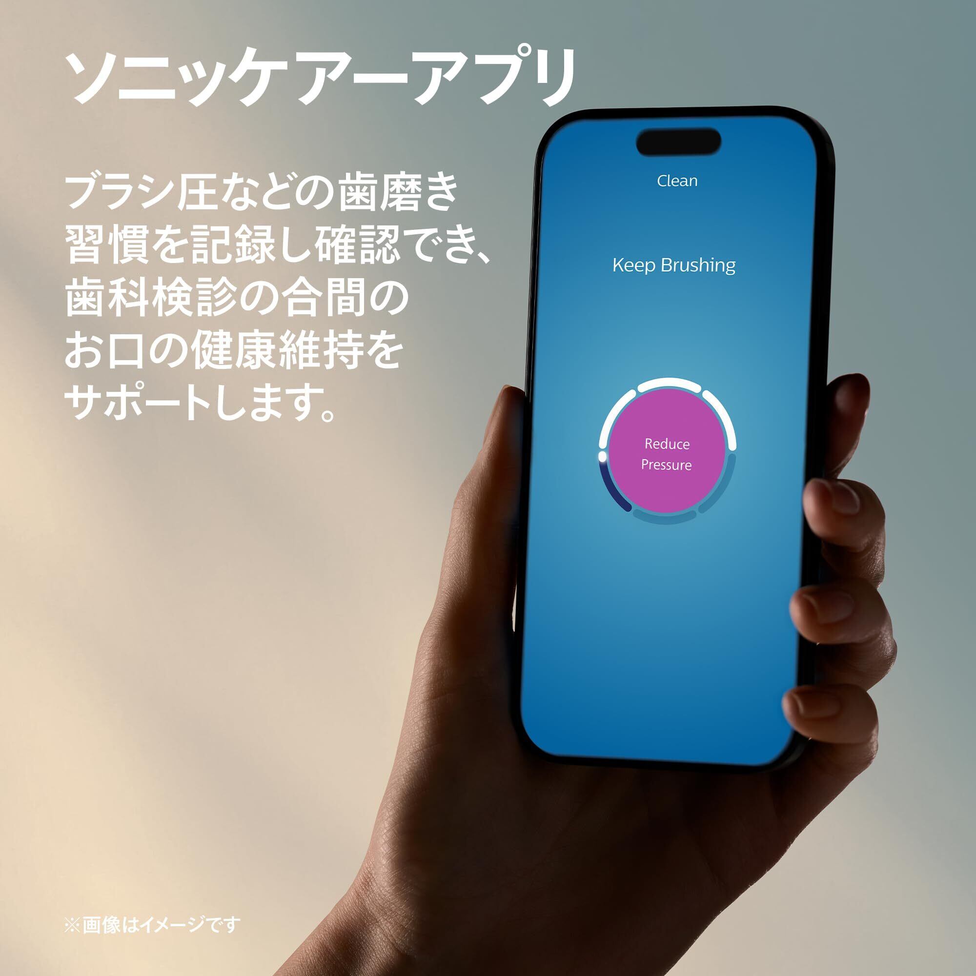 18年連続日本の歯科医・歯科衛生士が最も使用している1電動歯ブラシブランド、フィリップス ソニッケア―のプレミアムシリーズ「ダイヤモンドクリーン9000」に歯垢・ステイン除去効果はそのままに、アクセサリーをシンプルにしたモデルが登場。 約30年にわたる研究と開発によって、進化し続けるソニッケアーブランドは、歯科医・歯科衛生士のみなさんに信頼され、長く使い続けられており、ソニッケアーの効果は世界で50を超える大学・研究機関における、175件以上の臨床試験や研究により裏付けられています。 毎分約31,000ストロークの高速振動で歯垢をたたき浮かせ、ブラシヘッドの幅広い振幅で浮かせた歯垢をはらい落とすと同時に、それらの動きが口の中の唾液の流れ「音波水流」を発生させ、やさしく、効果的に歯垢をかき出すサポートをします。 プレミアムオールインワンブラシヘッドは、角度のついたアングル毛先で歯垢、ステイン、歯ぐきの健康すべてにアプローチし届きにくい場所にもしっかり届ききれいな仕上がりを実現。 先端のトライアングルカットで、2日間で最大2 倍のステイン(着色汚れ)を除去し、また、長めの毛先は歯と歯ぐきの境目にやさしい刺激を与え、2週間で歯ぐきの健康を推進されます。 ダイヤモンドクリーン 9000 には、クリーン(基本のブラッシングモード)、ホワイトプラス(ステインを落とし磨き上げる)、ガムヘルス(歯垢を落とし、歯ぐきにやさしい刺激を)、ディープクリーンプラス(心地よい振動で歯垢をしっかり除去)のモードが搭載されており、さまざまなブラッシングのニーズに対応します。ブラッシングの強さ設定も弱、中、強の 3 段階から選択可能。 ソニッケアーアプリ・プログレスレポートにより、ハンドルとアプリがBluetooth®6でペアリングし、毎日の歯磨きを記録。 磨いた回数や時間、ブラッシングの強さなどをスマートフォンの画面で確認でき、より良いブラッシングへとサポートします。歯磨きする際にスマホを持っていく必要はなく、時間があるときにアプリを開けばハンドルで記録した内容がアプリに反映されます。 過圧防止センサー機能によりブラシにかけられた圧力が強いとハンドルに内蔵されたセンサーが感知した場合、ハンドルの振動が変化して知らせ、ブラシ圧を弱めてブラッシングするよう促してくれます。 ブラシヘッドに内蔵されたRFID機能搭載のマイクロチップがハンドルと連携して、ブラシヘッドをハンドルに取り付けるだけで適切なモードと強さレベルを自動で設定(モード・強さはお好みで変更可能)ブラシヘッドの交換はブラシヘッドを歯にあてる力や使用時間を記録し、ブラシヘッドが磨耗して交換が必要な時期をわかりやすくランプでお知らせ。